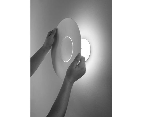Названный в честь мифического бога, настенный / потолочный светильник Thor является смелым осветительным прибором, который создает настраиваемые световые эффекты, похожие на различные стадии луны. Плоский круглый рассеиватель изготовлен из металла и крепится к стеклянному цилиндрическому креплению. Рассеиватель может перемещаться вверх и вниз по цилиндрическому креплению, позволяя увеличить или уменьшить световой поток от светодиодного источника света. В зависимости от положения отражателя создаются различные световые эффекты.