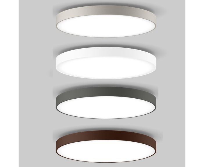 Круглый плафон из алюминия, катаный профиль, с бесшовной сваркой; Поверхность белая, серая, темно-серая, черная, бежевая или темно-коричневая с порошковым покрытием; высокоотражающее покрытие для увеличения кпд; поверхность серая, белая или черная с порошк. покрытием; сатинированный рассеиватель из ПММА для абс. однородной подсветки; до ø 600 мм: микропризматический рассеиватель из ПММА; светильник для рабочего места перед монитором согласно DIN EN 12464-1 (UGR < 19); прямая / непрямая характеристика излучения для дополнительного акцентирования потолка и большего зрительного комфорта; одинаковая яркость освещения во всех плоских светильниках одной компоновки (СИД e или e² или e2+); энергоэфф. светодиоды с высокой степенью цветопередачи; биннинг начальный ≤ 3 МакАдаму; поставляются с цветовой темпер. 3000 K и 4000 K; CRI ≥ 80; мин. 80% светового потока спустя 50000 ч эксплуатации; светильник с 2 кабельн. отв. и штепсельным зажимом для проходной кабельной разводки; степ. защ. IP 40; Защ. I; опционально регулирование яркости по сигналу DALI с функцией CLO; опционально без регулирования яркости.