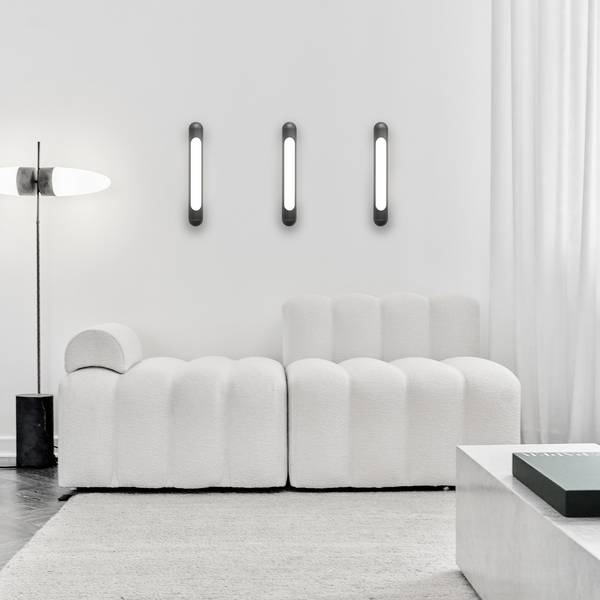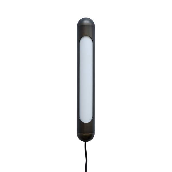 Коллекция Bullet характеризуется закрытым трубчатым металлическим абажуром с гладким резным отверстием. Отверстие закрыто изогнутым куском опалового стекла, фильтрующим свет от источника света внутри. Коллекция включает в себя люстру, подвесной светильник и настенный светильник - все они выполнены из железа с бронзовым покрытием и опалового стекла, создавая уникальное скульптурное освещение, вдохновленное стилем ар-деко. Трубчатый абажур настенного светильника крепится к гладкому металлическому настенному стакану и крепится непосредственно к стене в вертикальном положении.