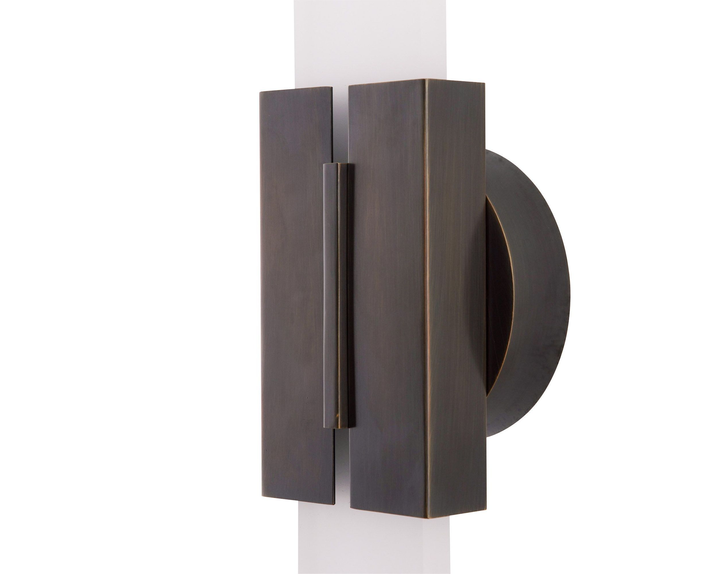 Визуальная элегантность достигается благодаря конструктивистскому дизайну Monroe в стиле баухаус. Английская бронзовая железная скоба центрирует панель из матового хрусталя, как стильная броня. Две светодиодные лампы аккуратно скрыты матовым кристаллом, который помогает рассеивать яркость и обеспечивает мягкое свечение.