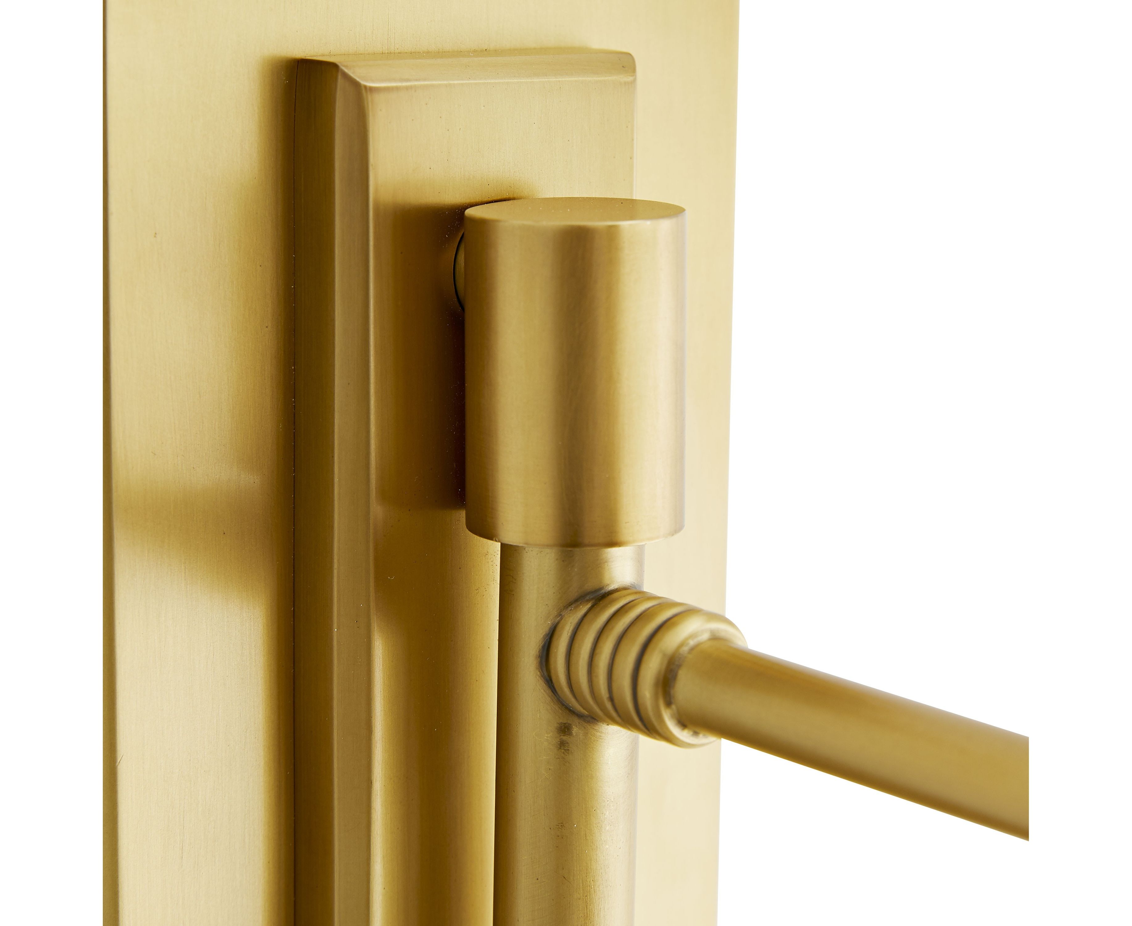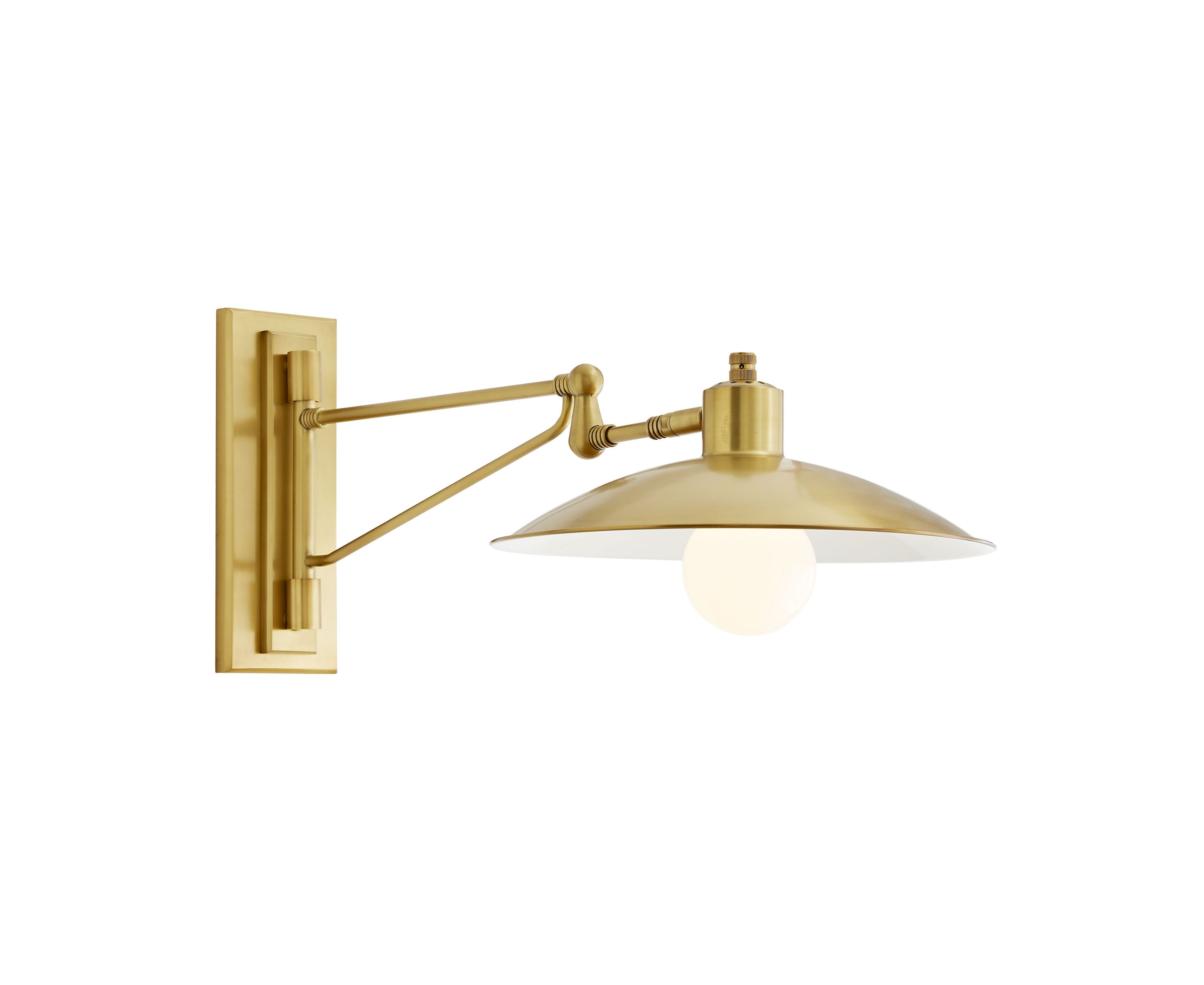 Уникальное крепление и кронштейн этого динамичного настенного бра, полностью изготовленные из стали и отделанные антикварной латунью, придают отчетливое очарование существующему винтажному шарму. Он установлен на поворотном кронштейне, поворачивающемся на 180°, а штора имеет небольшую вертикальную маневренность.
