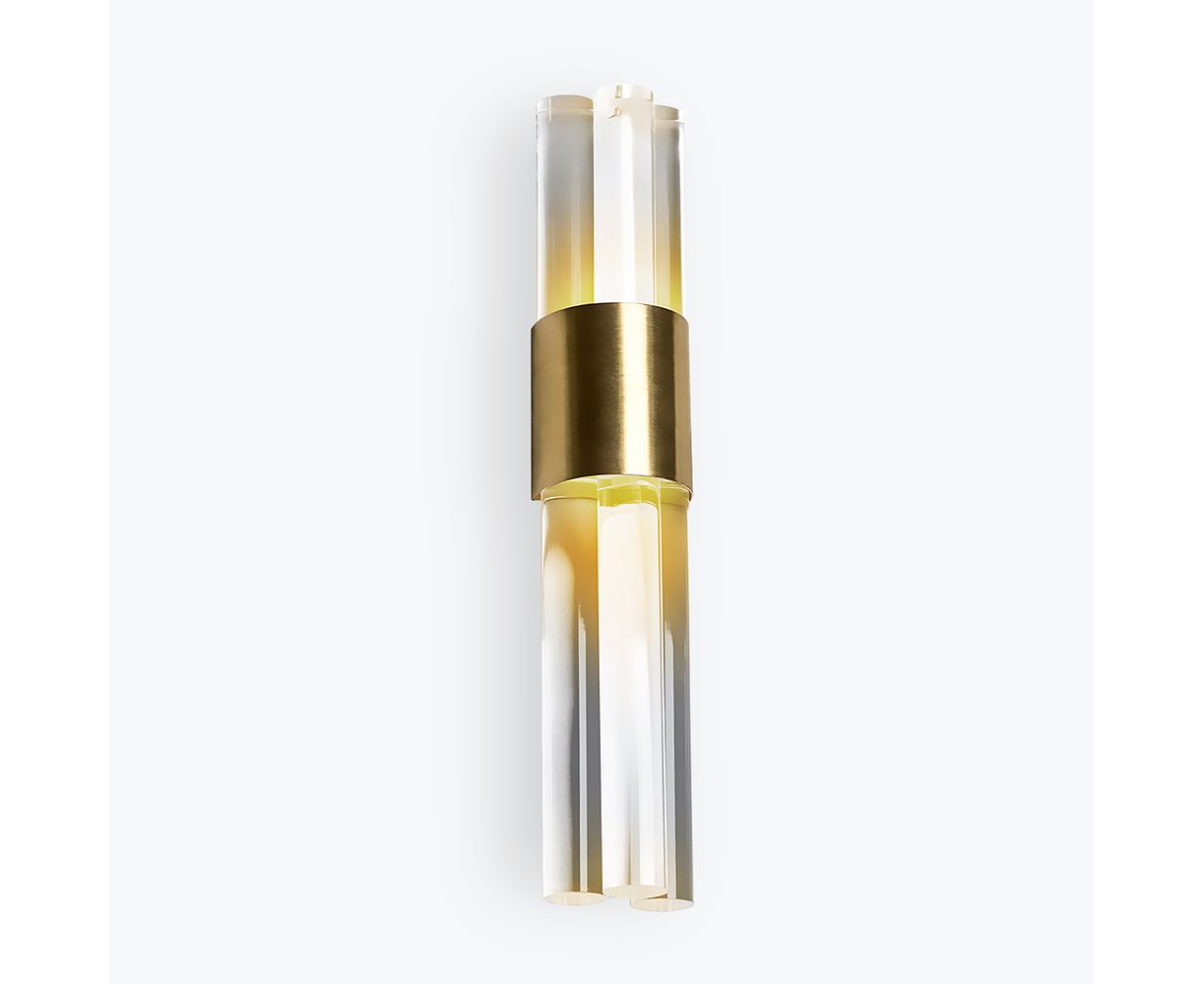 Красивый тонкий настенный светильник великолепной элегантности, сделанный из 3 больших прочных люцитовых стержней с изогнутой металлической пластиной