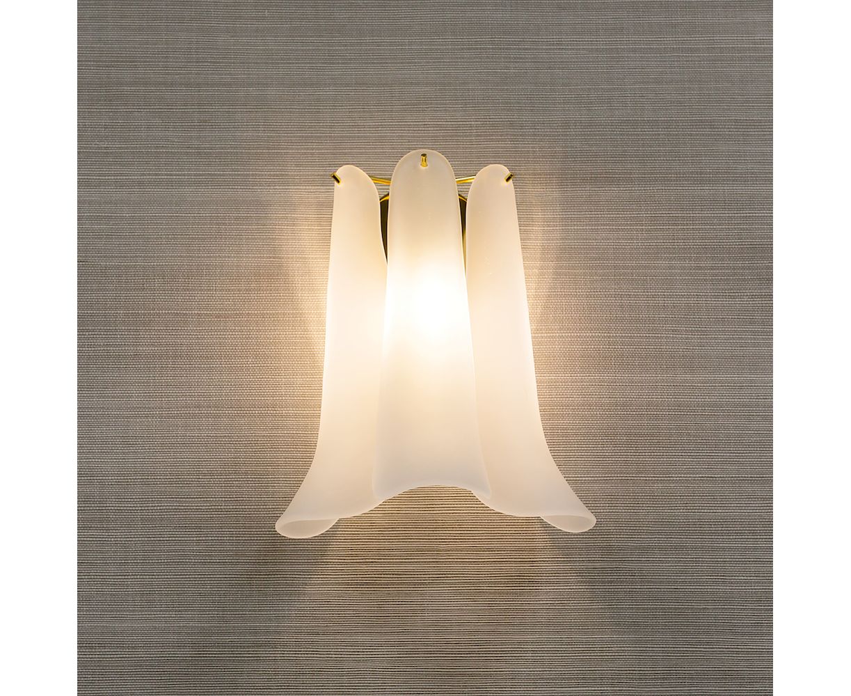 Новый настенный светильник Dahlia, идеально сочетающийся с люстрой Dahlia, сочетает в себе современность с классическим дизайном и элегантностью - более современный взгляд на предшественник настенного светильника Petal. Вдохновленные нежными лепестками, украшающими роскошный цветок георгина, каждый кусочек стекла красиво свисает с настенной рамы из дымчатого или атласного муранского стекла.