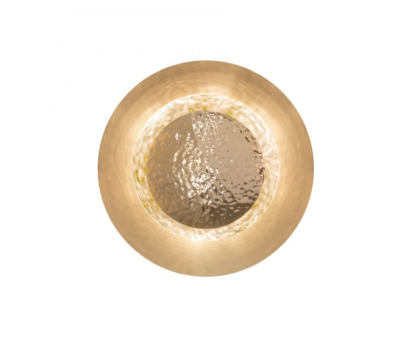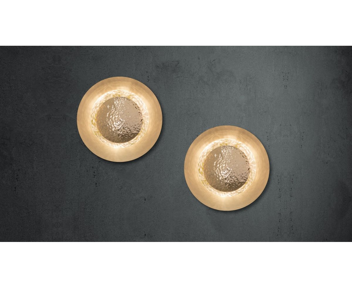 Eclipse Handmade Wall Light назван в честь явления солнечного затмения. Когда луна медленно начинает вращаться до точки, почти совпадающей с Солнцем и Землей, луна создает тень, которая частично препятствует тому, чтобы солнечные лучи были видны с Земли. Воссоздавая это чудо природы, настенный светильник Eclipse gold состоит из двух скругленных латунных пластин, расположенных друг напротив друга, с небольшим расстоянием между ними, позволяющим просвечивать лишь небольшим полумесяцам света.