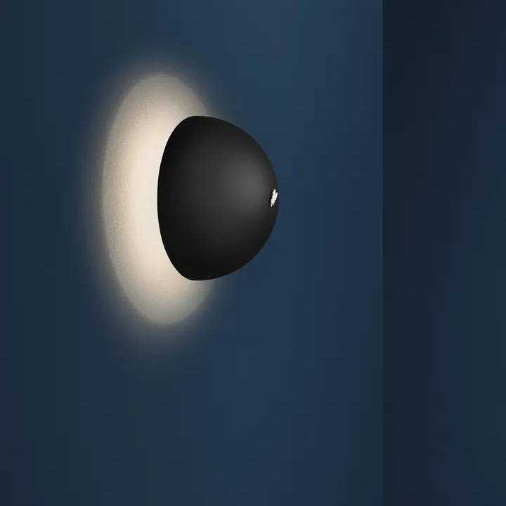 Ale W представляет собой почти идеальную полусферу. Абажур можно отодвинуть от стены, изменив тем самым размер светового пятна, создаваемого на поверхности. Отличительным элементом новой линейки Ale, включающей четыре модификации, является сферический абажур с декоративной мушкой.