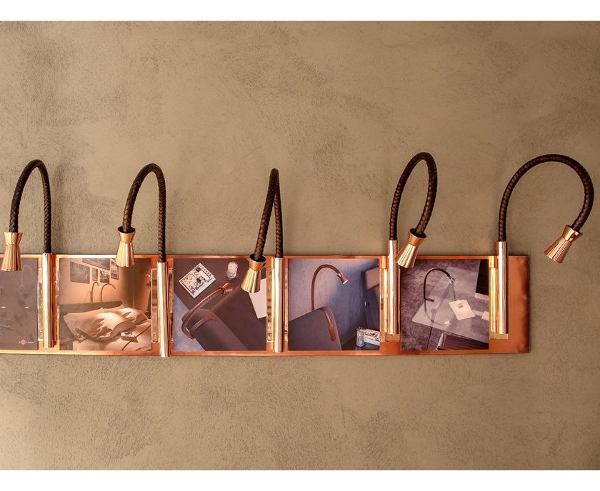 G+T родился от идеи портативного, но роскошного объекта, отвечающего реальным потребностям пространства и установки. Подходит для любого места, например, яхт и супер-яхт, исторических зданий, роскошных бутиков и ювелирных магазинов. Когда дизайн сочетает в себе универсальность и функциональность создавая портативный свет, адаптируясь к использованию и пространству, читая, работая или наслаждаясь джином и тоником, которые берут свое название и вдохновляют, сидя за столом или лежа на кресле. Диффузор - это настоящая коктейльная мерная чашка. Лампа для чтения с гибким кронштейном, изготовленным из латуни и обтянутым темно-коричневой плетеной кожей, а металлические детали выполнены из меди и отделаны сатинированной сталью для стены.
