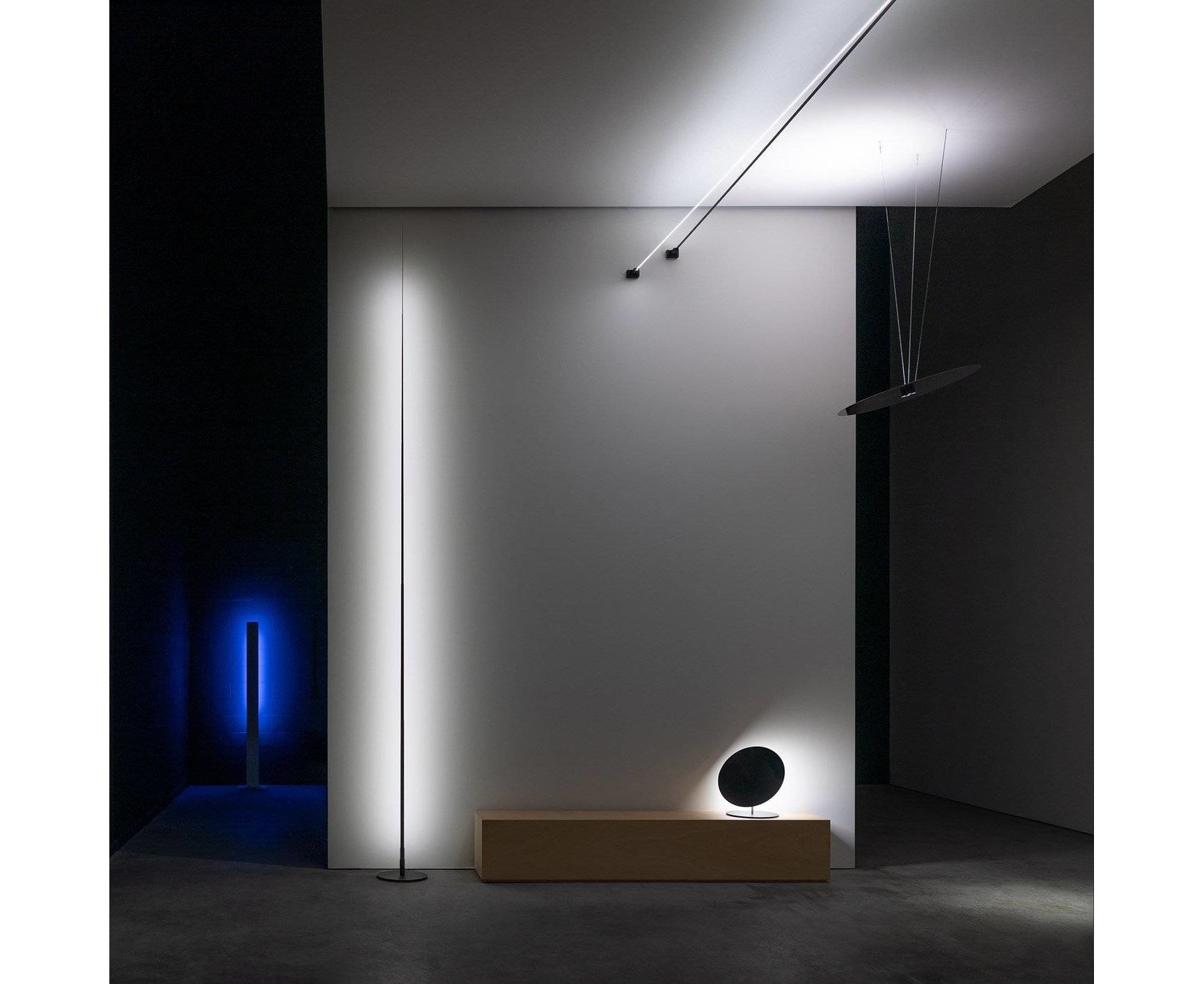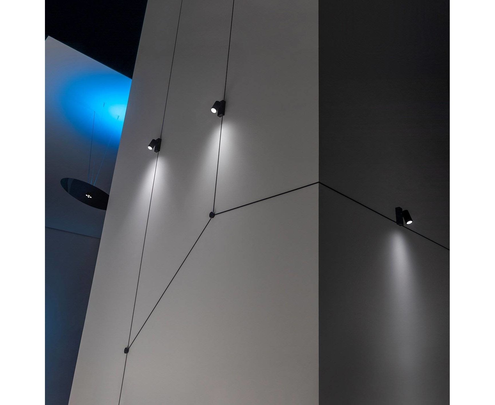 Ohm является частью осветительных решений Sistemi. Свет бежит по проводу. В воздухе висит почти незаметный провод. Как канатоходец по тонкой веревке, свет идет туда, куда нужно, невесомый и чудесный. Ohm - это электромеханический проект, который максимально использует характеристики светящихся диодов. Секрет Ohm заключается в специальном однополярном проводе, протянутом от стены к стене. То, откуда исходит свет, скрыто, скрыто незаметно, уделяя все внимание тому, что он освещает.