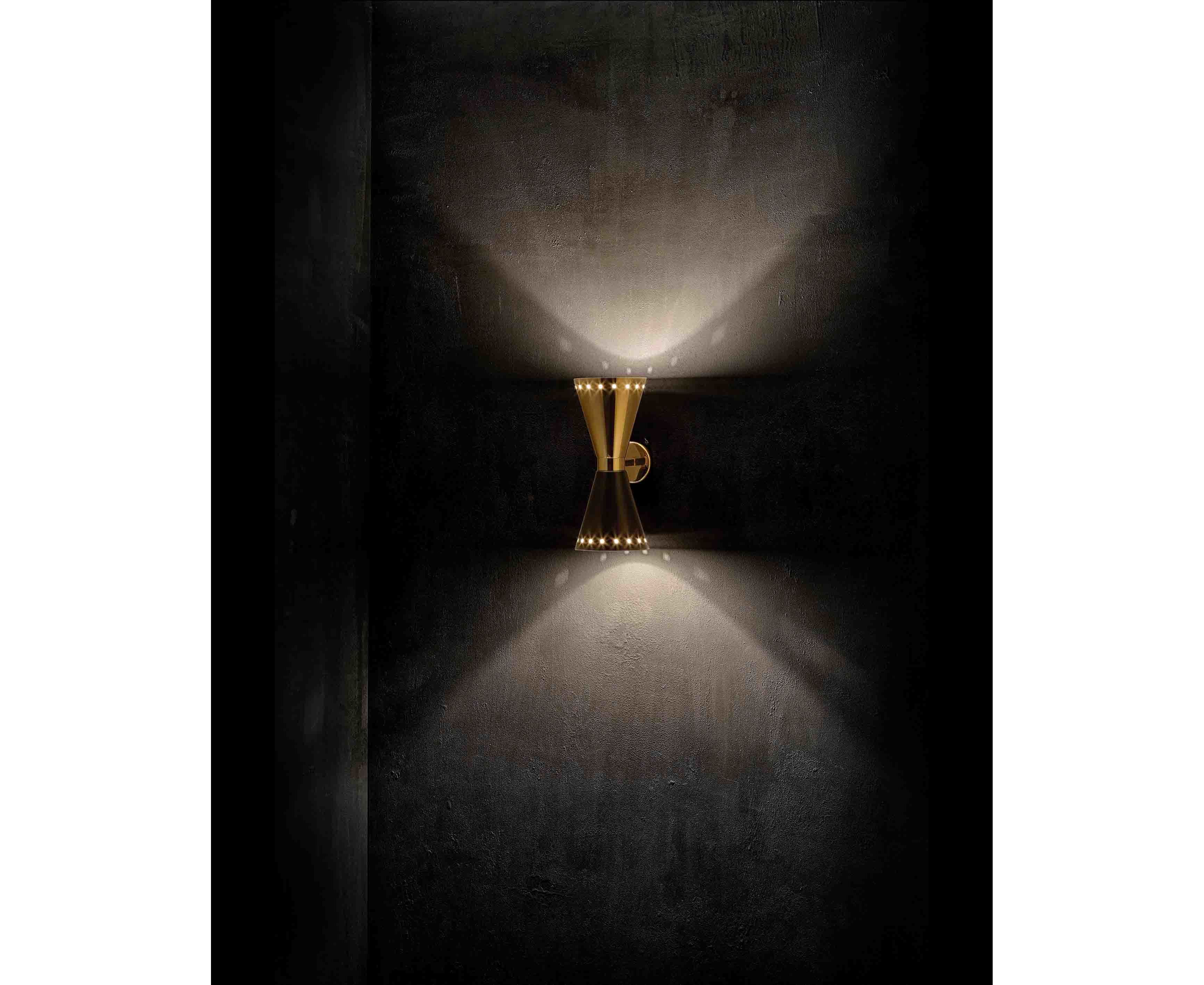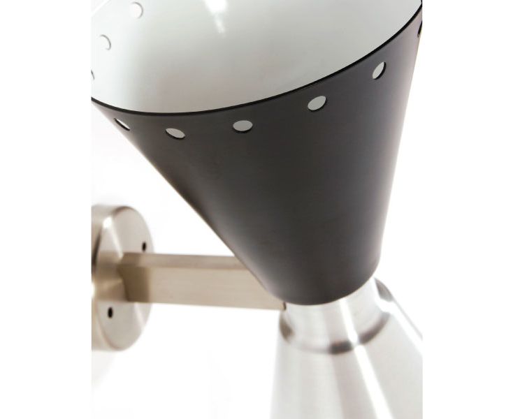 Настенные светильники Piazzolla выполнены в стиле 60-х годов и привносят современный стиль в современные интерьеры. Оснащенный двумя алюминиевыми конусами, этот настенный светильник предлагает освещение как от верхних, так и от нижних абажуров, чтобы обеспечить мягкое свечение.