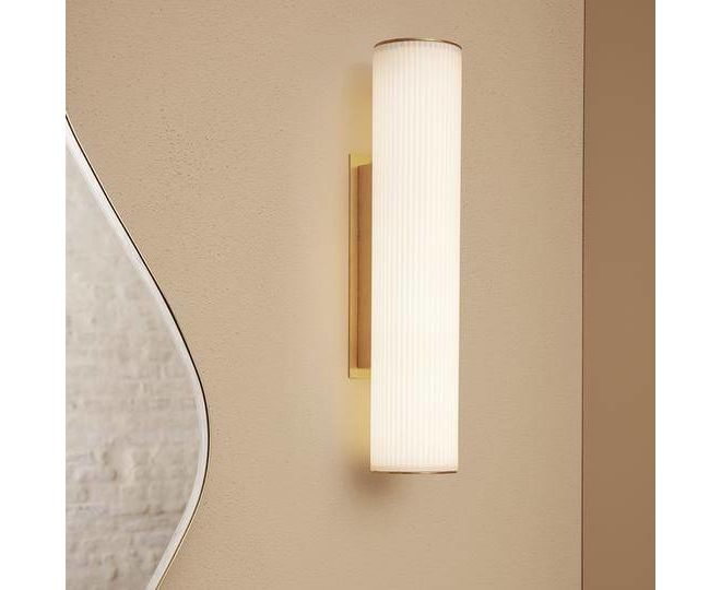 Сочетая текстурную сложность с современной простотой, настенный светильник Vuelta выполнен из цилиндрического полупрозрачного стекла с отчетливой рифленой поверхностью и отделкой из матового металла цвета "сталь" или "латунь". Светодиодный источник света, обеспечивает мягкий рассеянный свет. Настенный светильник Vuelta поставляется с пультом дистанционного управления, диммером для максимального контроля атмосферы. Светильник можно использовать отдельно или повесить несколько ламп подряд для яркого, единообразного освещения.