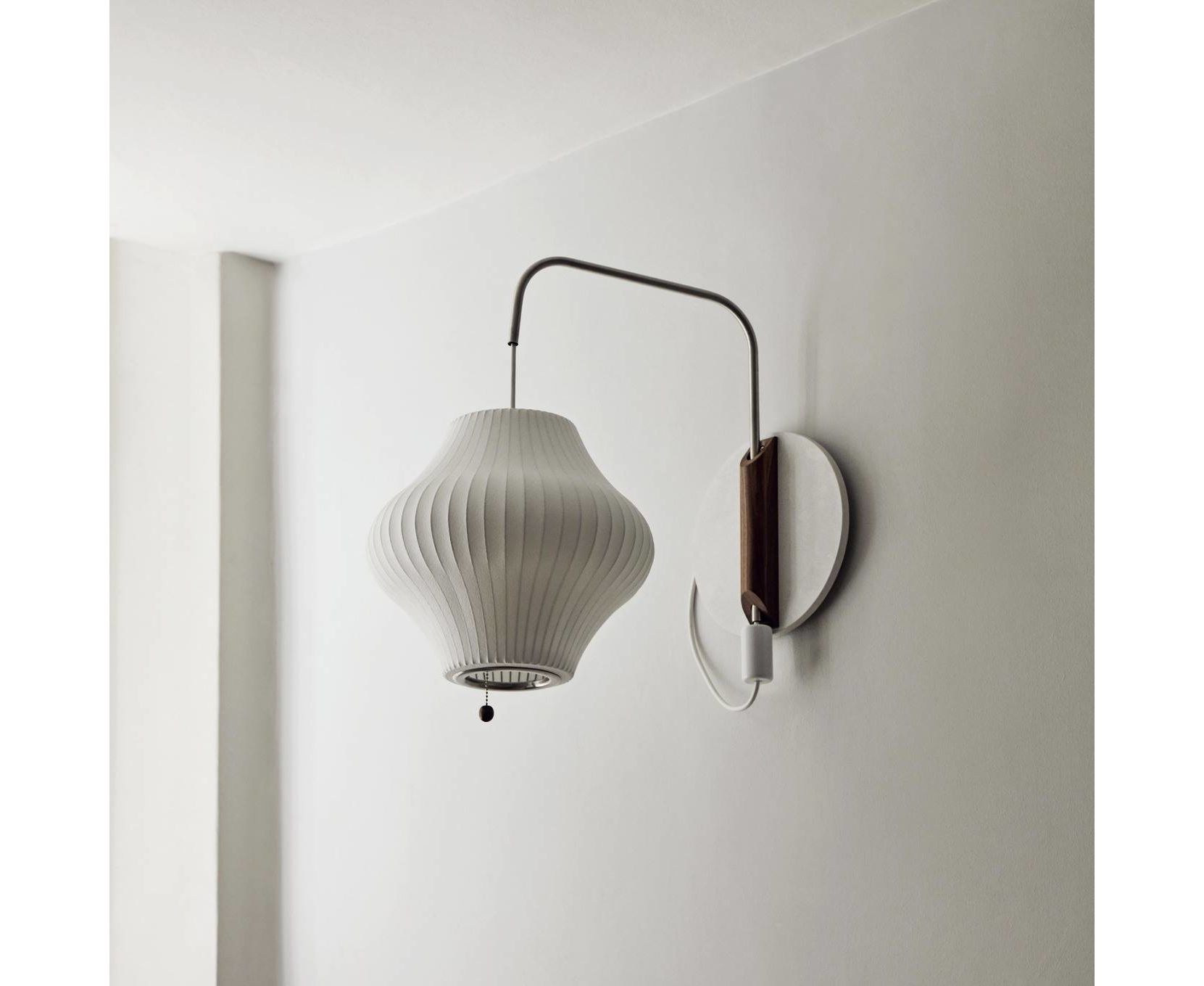 Настенный светильник Nelson Pear является частью серии ламп Nelson. Настенное крепление из орехового дерева и стальной рычаг подвешивают удлиненный сферический абажур к стене и позволяют лампе наполнять любой интерьер теплым рассеянным светом. Рычаг лампы можно регулировать слева направо, вверх и вниз, не меняя его положения на стене.