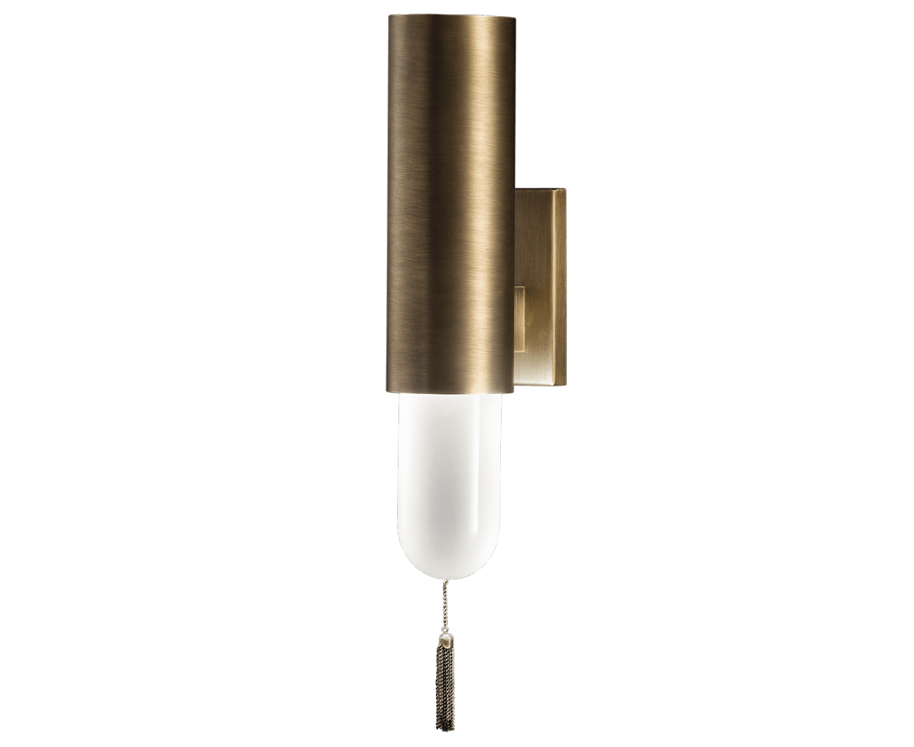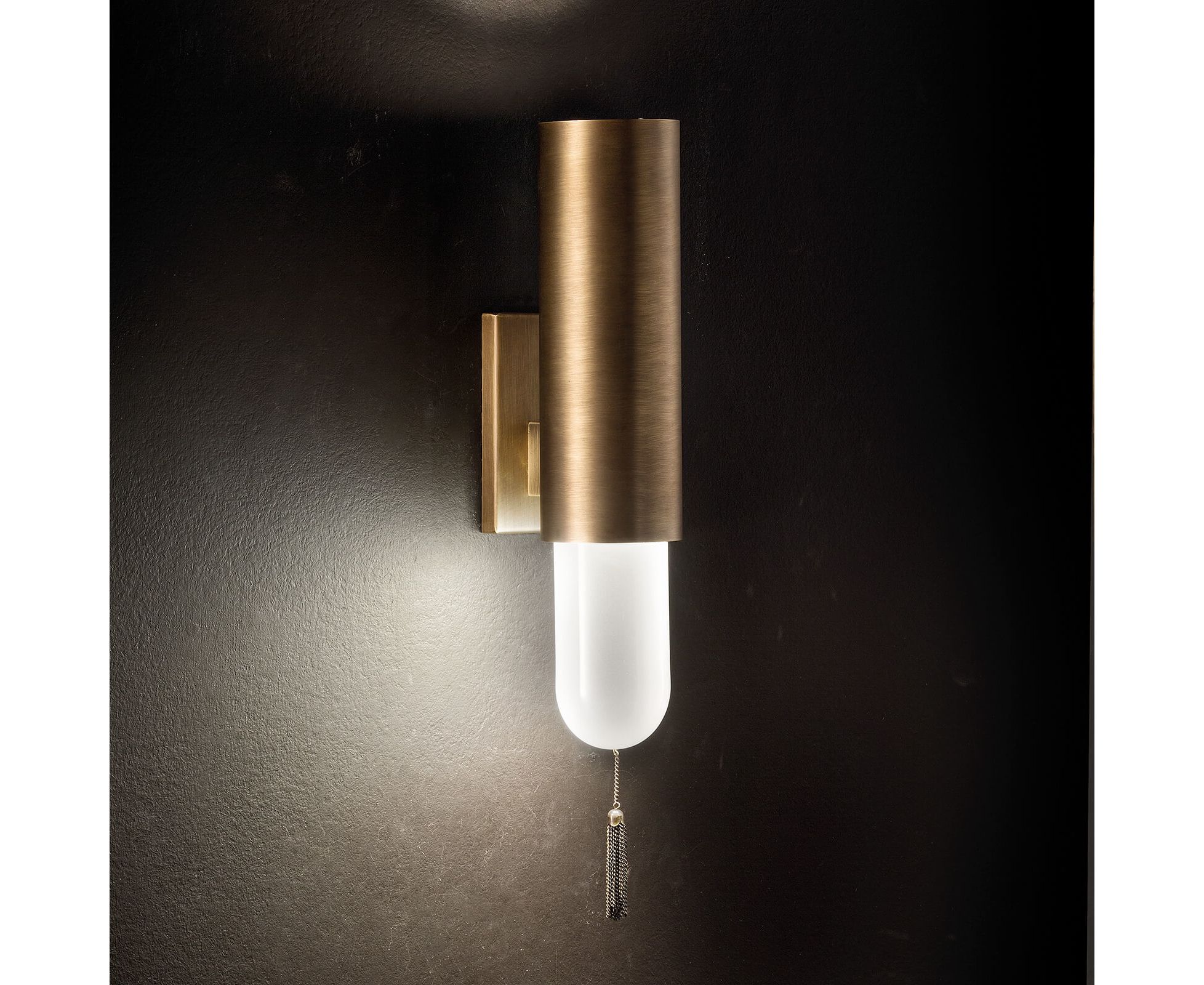 Настенный светильник из металла с отделкой из античной бронзы с рассеивателем из белого стекла. Доступен в разных цветах.