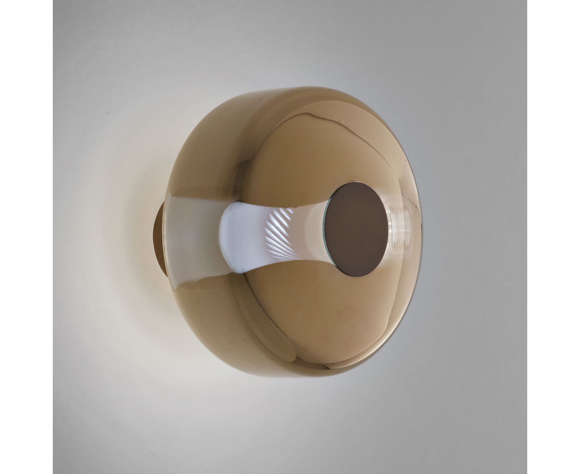 Коллекция Solene вдохновлена энергичной репрезентацией человеческого сердца. Белый центр - это сердце, которое излучает энергию и свет вокруг себя и генерирует эмоции. Универсальное магнитное поле в космосе. Настенный светильник Solene - это светильник с внешними плафоном из выдувного стекла с синим или золотым оттенком. Внутренний диффузор из белого выдувного стекла с ручной резьбой.