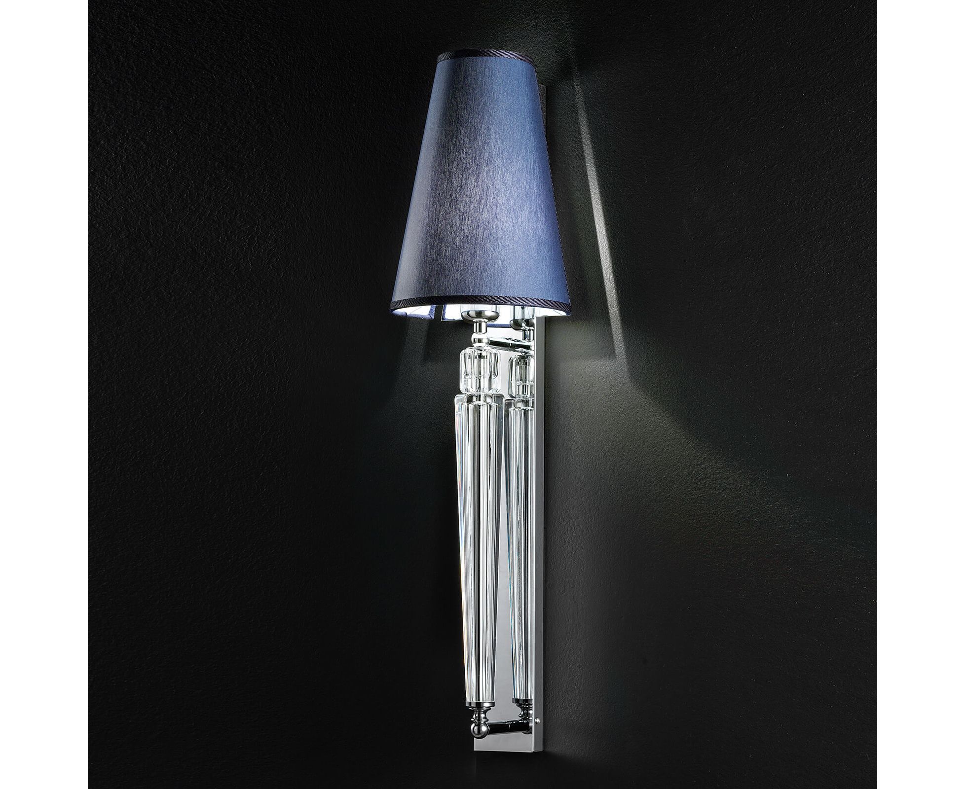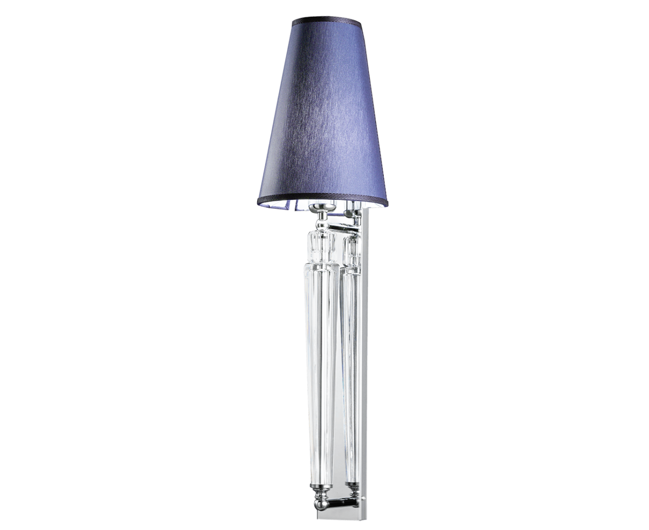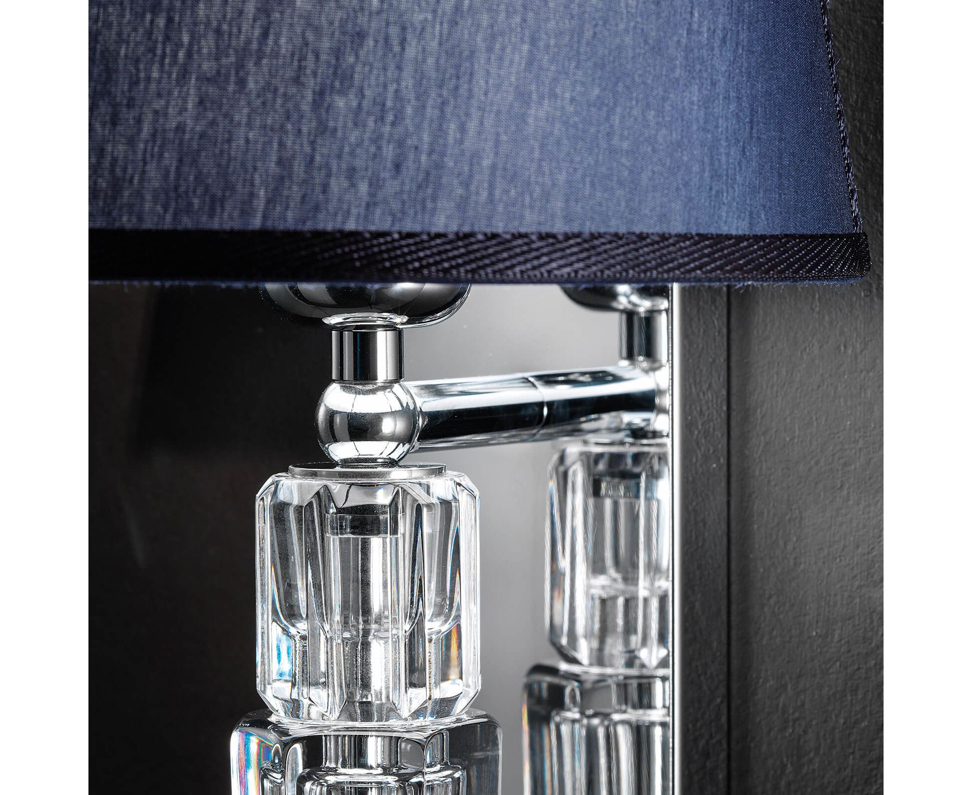 Настенный светильник из резного хрусталя и металла с хромированной отделкой, абажур из синей ткани. Доступен в разных цветах.