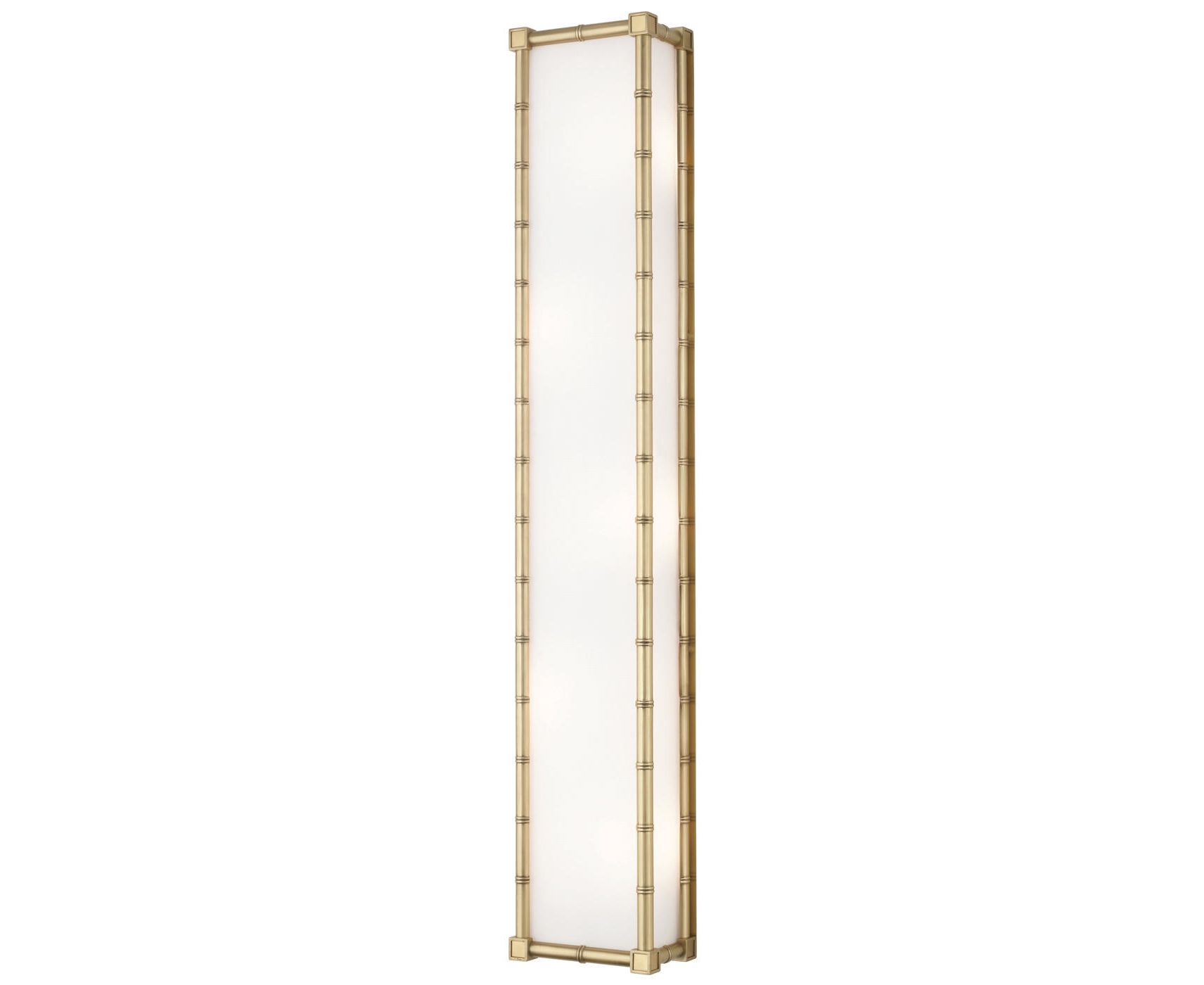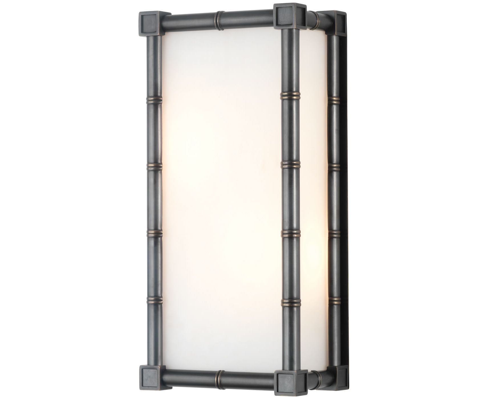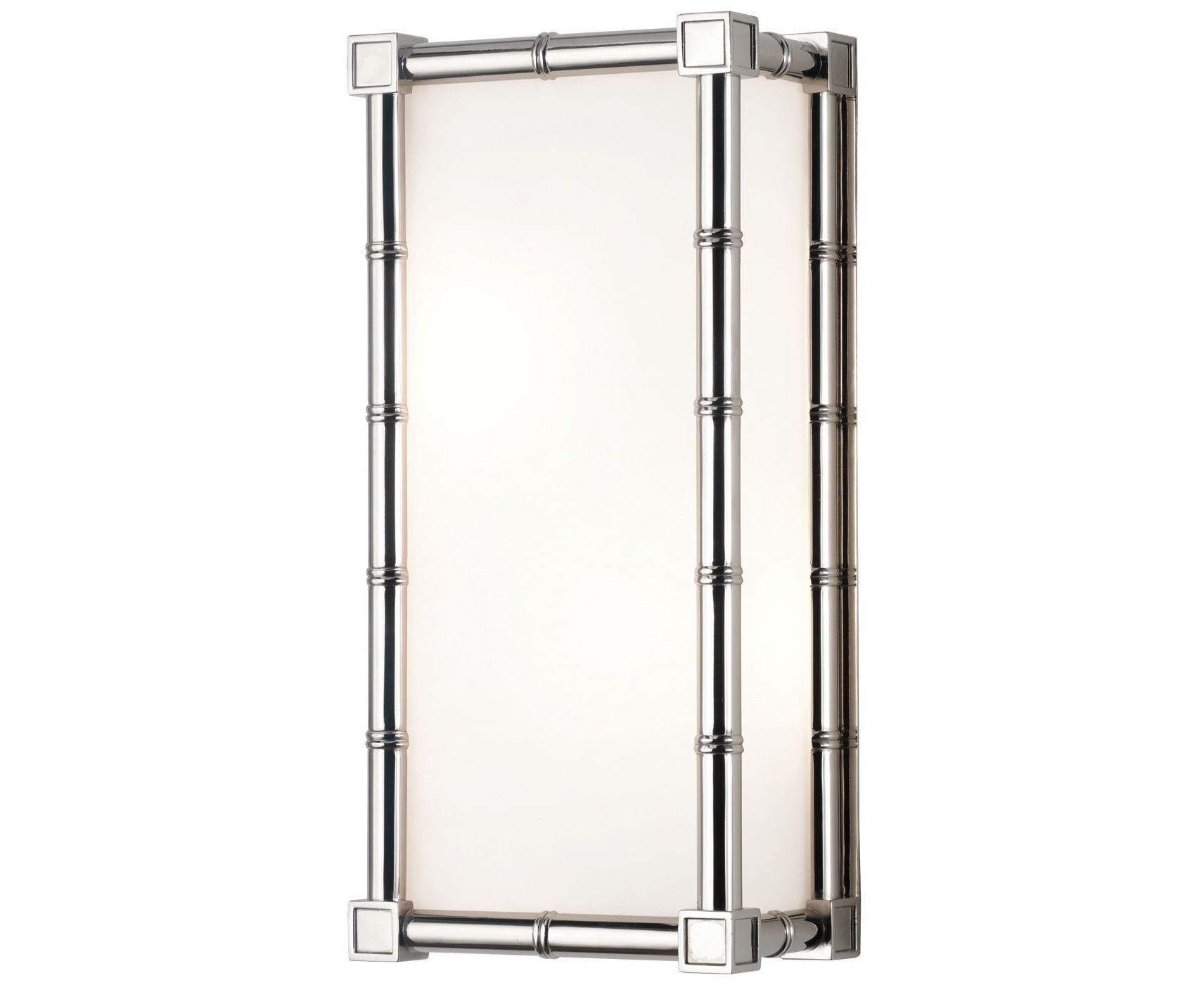 Современный взгляд на классический бамбук. Поворот в традиционном, знаковом мире бамбука добавляет немного светского гламура к лофту или модернизму к Park Avenue Pad. Meurice Sconce имеют современный бамбуковый каркас на ваш выбор из полированного никеля или патинированной бронзы. Свет рассеивается через оттенок матового белого стекла. Он идеально подходит для добавления модернистского шарма в прихожую, спальню или ванную.