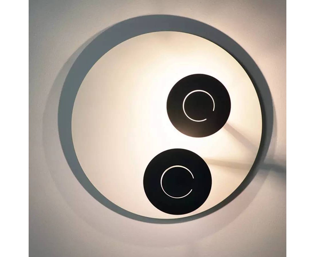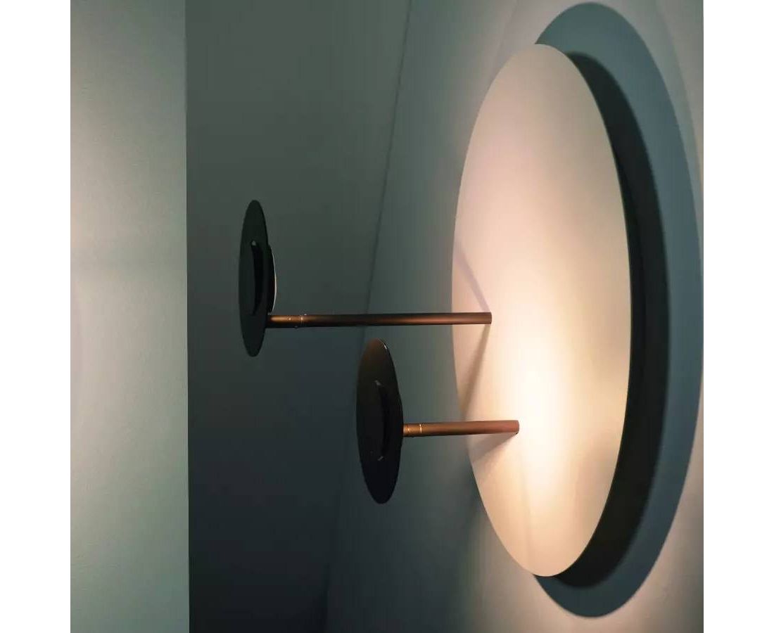Игра расстояний между различными плоскостями, создающая завораживающий отраженный свет и наводящие на размышления сценарии: светотень теней с двумя направленными и вращающимися светящимися ядрами, нанесенными на стальной диск.