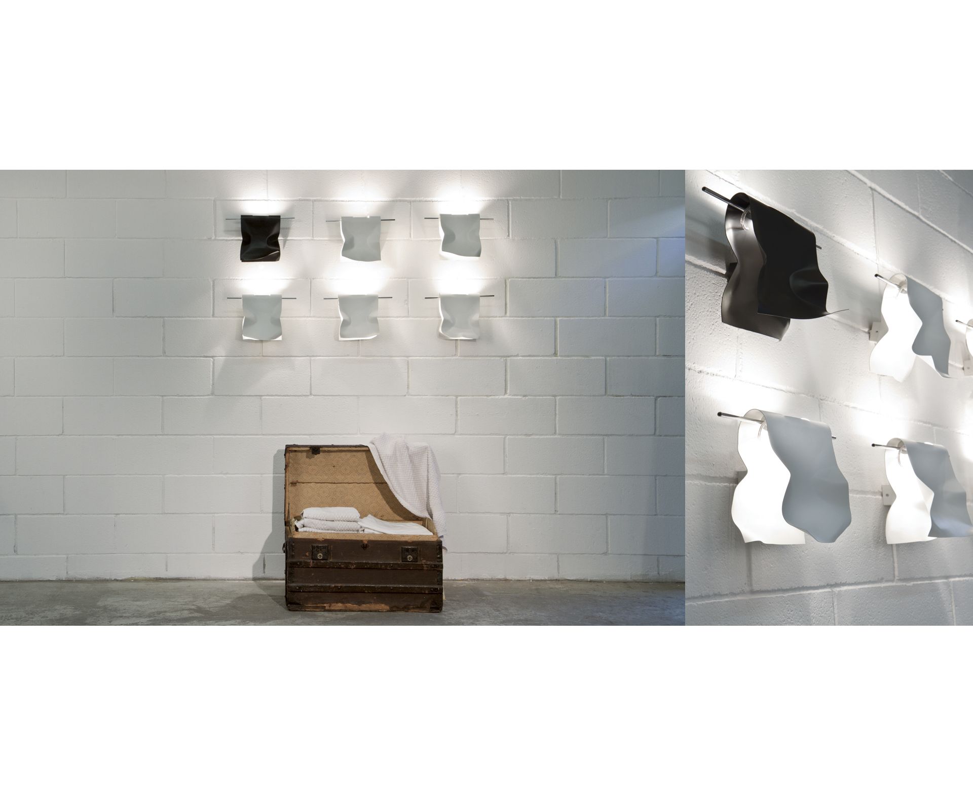Выходящий светодиодный свет изменяется в зависимости от цвета листа, помещенного в лампу: теплее с золотом, бронзой и медью, холоднее с серебряным листом. Полный белый цвет вместо этого полностью отражает концепцию «подвешивания одежды».