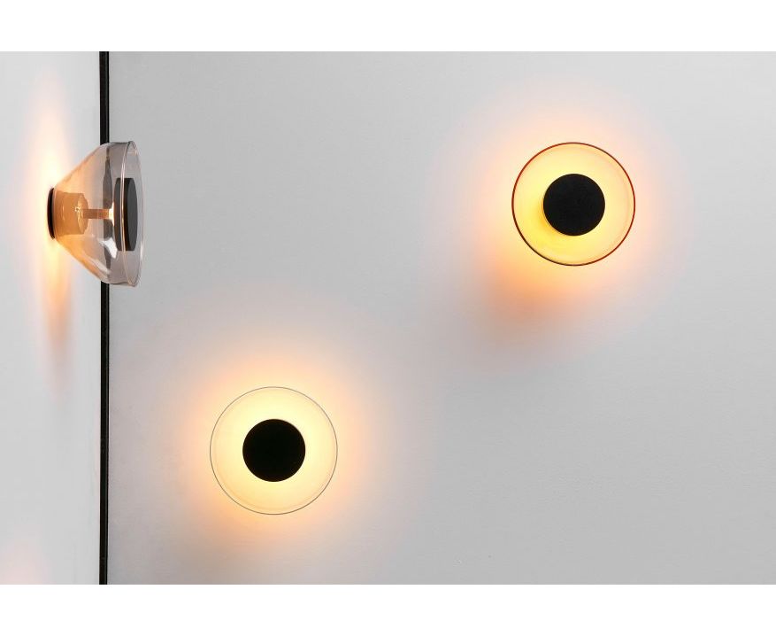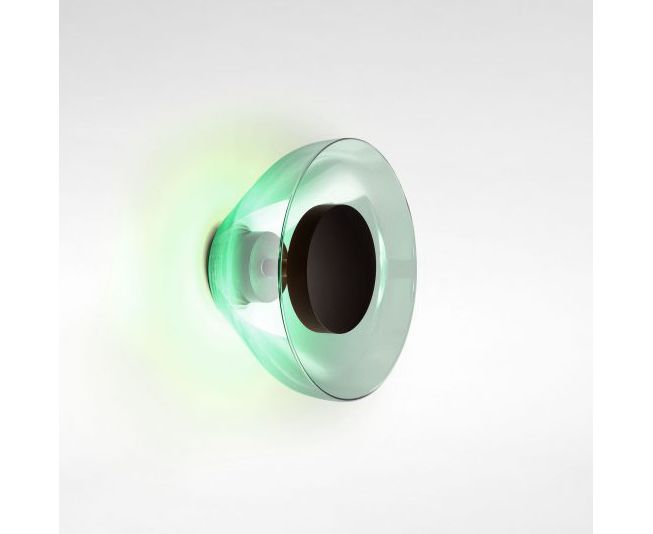 Аура следует эмоциональному дизайну, потому что стекло означает коллективную память, а также рациональный и современный дизайн, потому что он использует светодиодную технологию для достижения эффективности и тонкости. Опаловое, прозрачное или цветное стекло его абажура позволяет свету омывать стену и создает светящийся эффект без резкости, а также создает интересную точку в пространстве.
