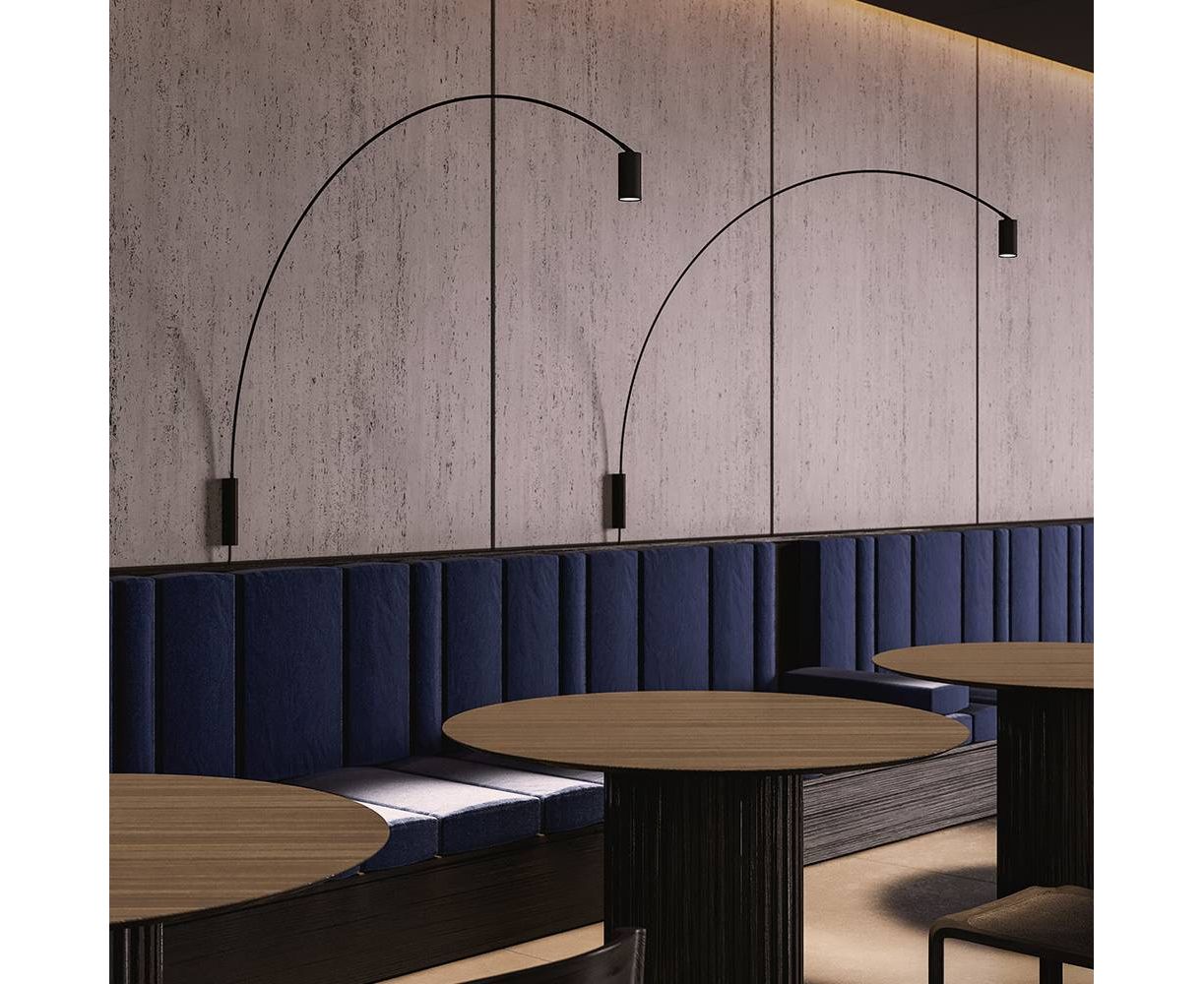 Последнее дополнение к коллекции Fox - Fox Wall. Стальная матовая черная окрашенная поворотная арка с ее четким, вневременным дизайном позволяет широким движениям создавать взаимодействие с пространством, в то время как цилиндрическое окночание с дополнительным антибликовым фильтром позволяет направлять свет в соответствии с любыми потребностями. Свет теплый и рассеянный и подходит для любого внутреннего пространства.