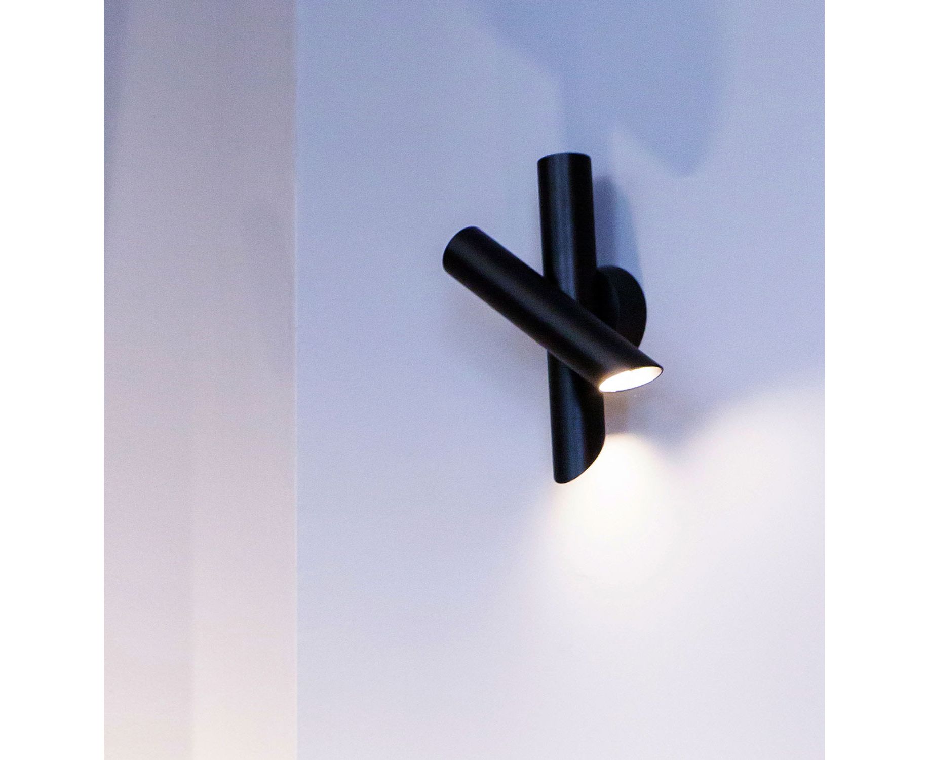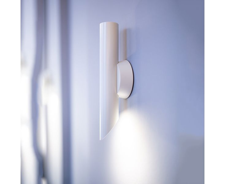 Коллекция подвесных, настенных и потолочных светильников с элементами из экструдированного алюминия. Опаловые поликарбонатные рассеиватели для теплого и естественного освещения. Регулируемые элементы в настенных версиях. Доступен также с диммером на корпусе лампы для версии Wall 2. Потолочная версия с поворотом на 340° для фиксированного потолочного элемента, в то время как другой элемент регулируется на 90°.