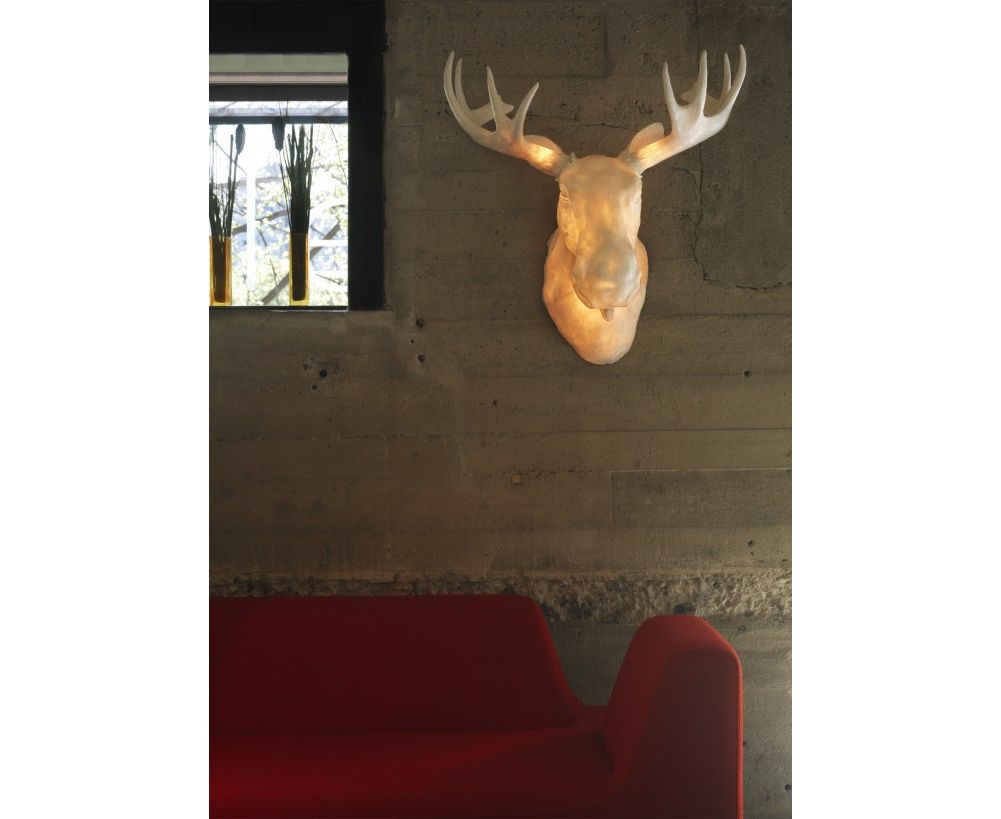 Moo - полноразмерный настенный светильник норвежского лося. Moo можно использовать для внутреннего и наружного украшения. Лампа фигуративной формы изготовлена из полимерного материала, который обеспечивает плавный и прозрачный поток света. Лампы, помещенные внутри рогов, добавляют лампе дополнительные элементы мягкого, сверкающего и полупрозрачного светового эффекта.