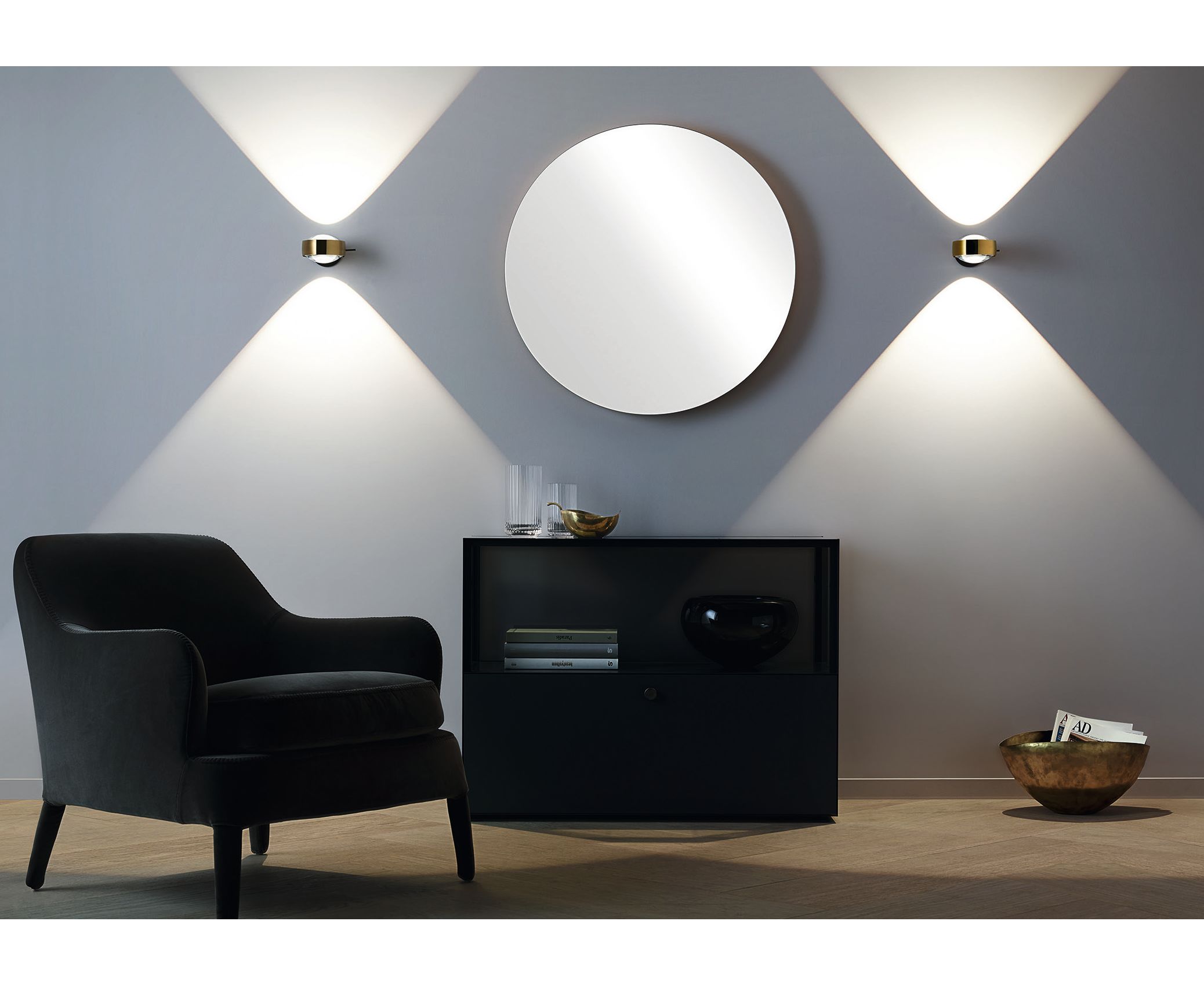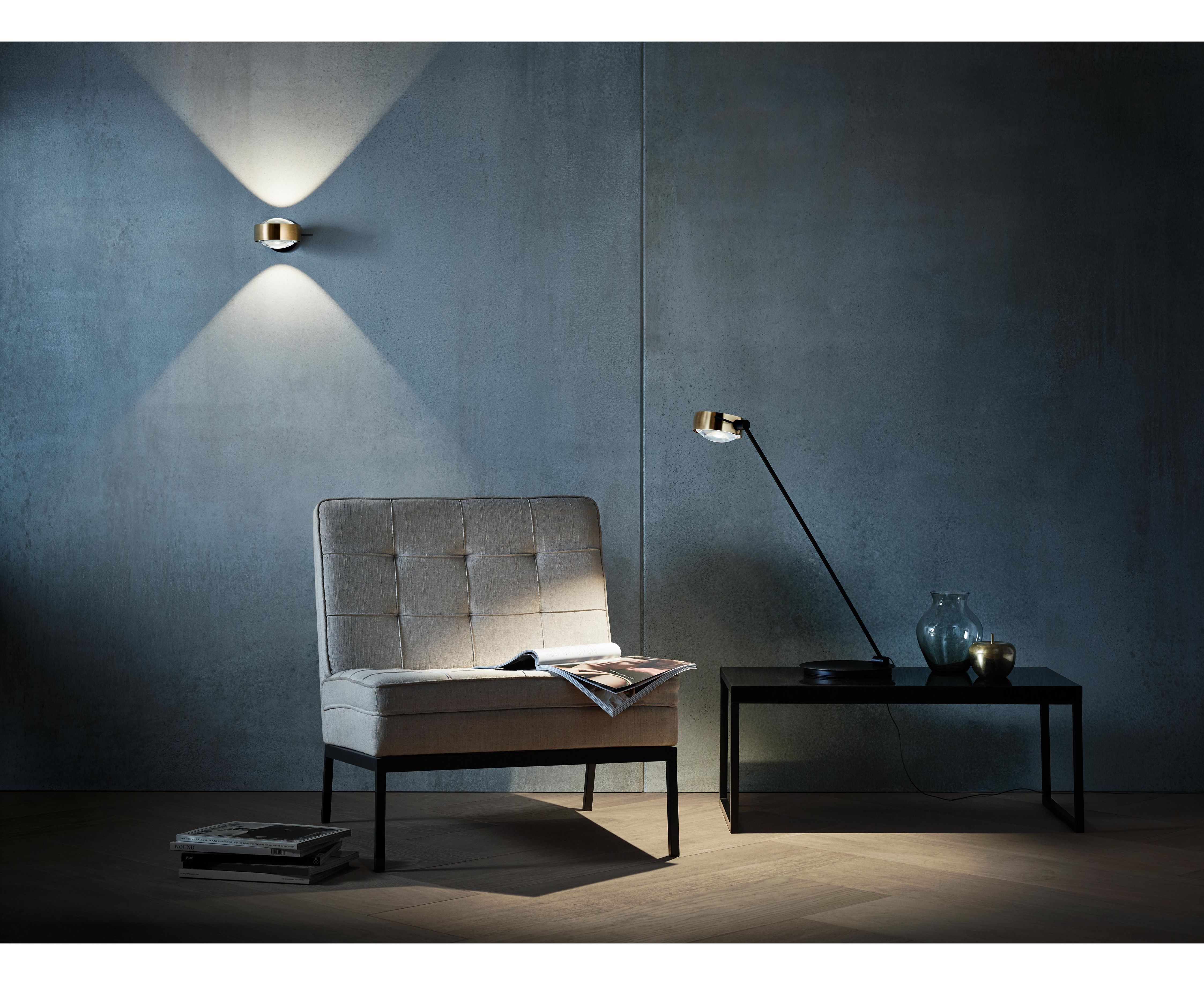 Sento verticale - дизайнерское утверждение, превращающее свет в произведение искусства. Вращающийся светодиодный настенный светильник оснащен двумя линзами для характерного светового конуса на стене. Подсветка и свет управляются раздельно прикосновением через бесконтактное управление или Occhio air (опция). Доступен как одиночная версия, так и удлиненная.