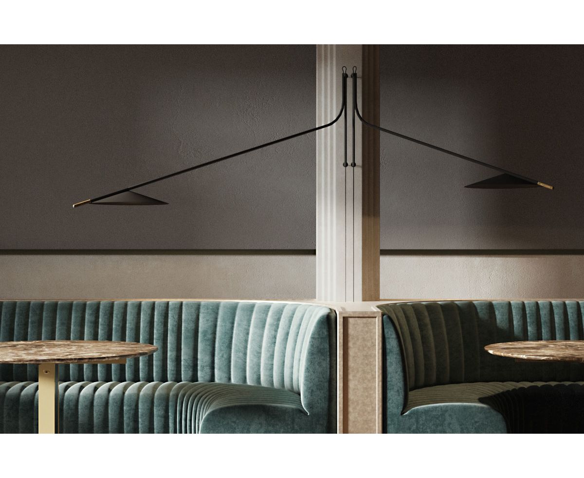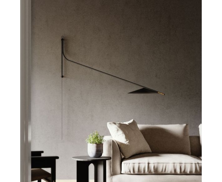 Glifo - настенный светильник с выступами. Точность и минимализм лампы вдохновлены типографскими символами, в данном случае глифами, которые по своей символической природе стильны и просты. Две металлические линии определяют пространство: вертикальный элемент, точка вращения и наклонный элемент, который окружает угол раскрытия абажура, предлагая точку для перемещения лампы. Настенное крепление, ножка и абажур выполнены из окрашенной стали.