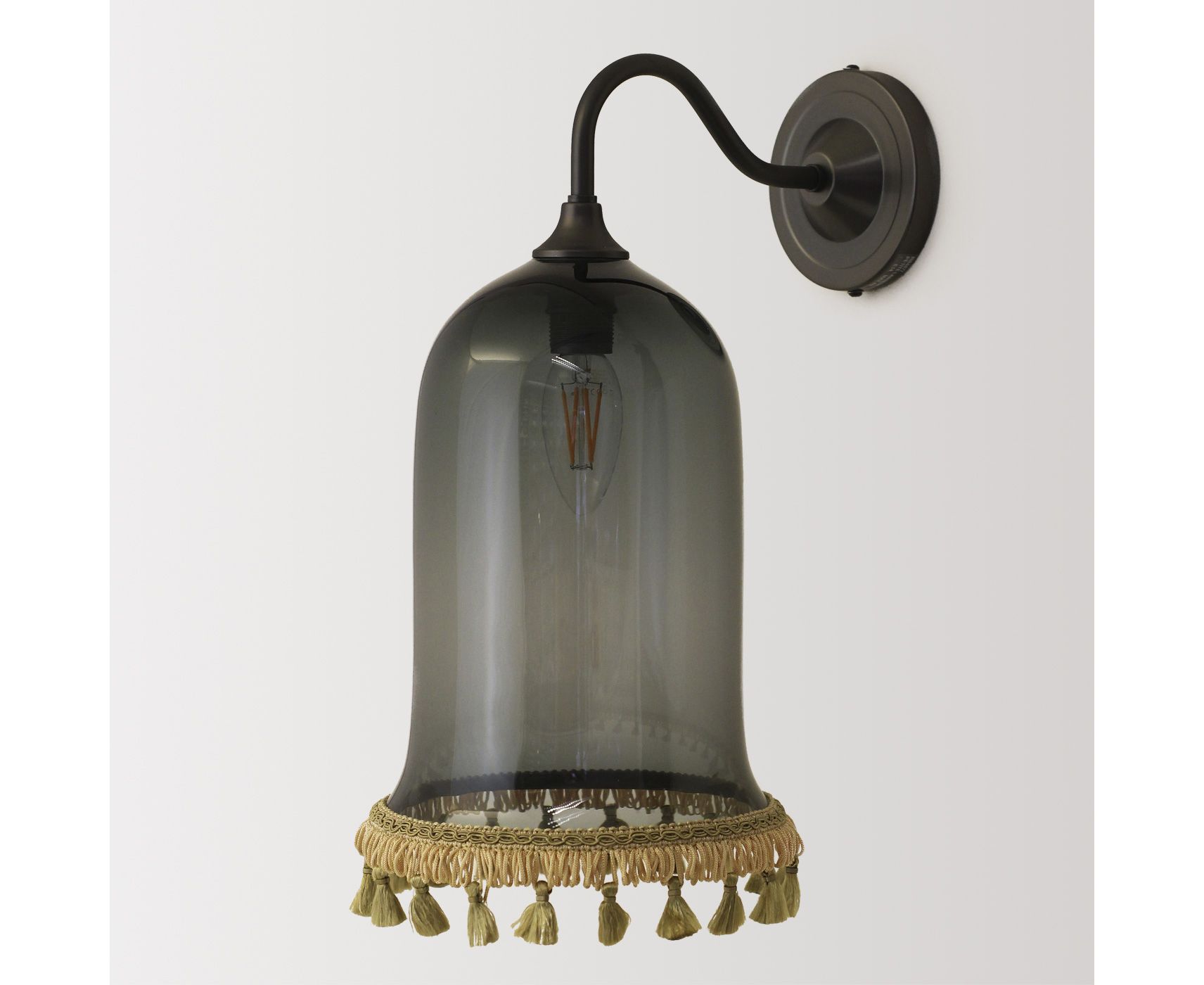 Эта декадентская комбинация из цветного стекла ручной работы и кисточки из ткани - непревзойденное дополнение к любому старинному дому, прикосновение драмы к угрюмым темным интерьерам. Настенный кронштейн доступен как в традиционной изогнутой форме, так и с прямой трубкой под прямым углом для более современного изгиба.