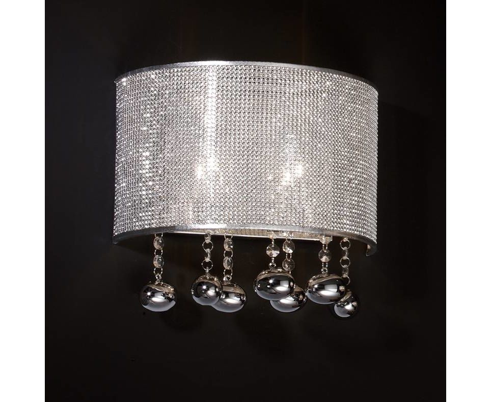 Бра из полированной стали с отделкой "хром", плафон из перфорированного винила с покрытием "хром", с бусинами из гранёного стекла внутри и с шарами из стекла с покрытием "хром"