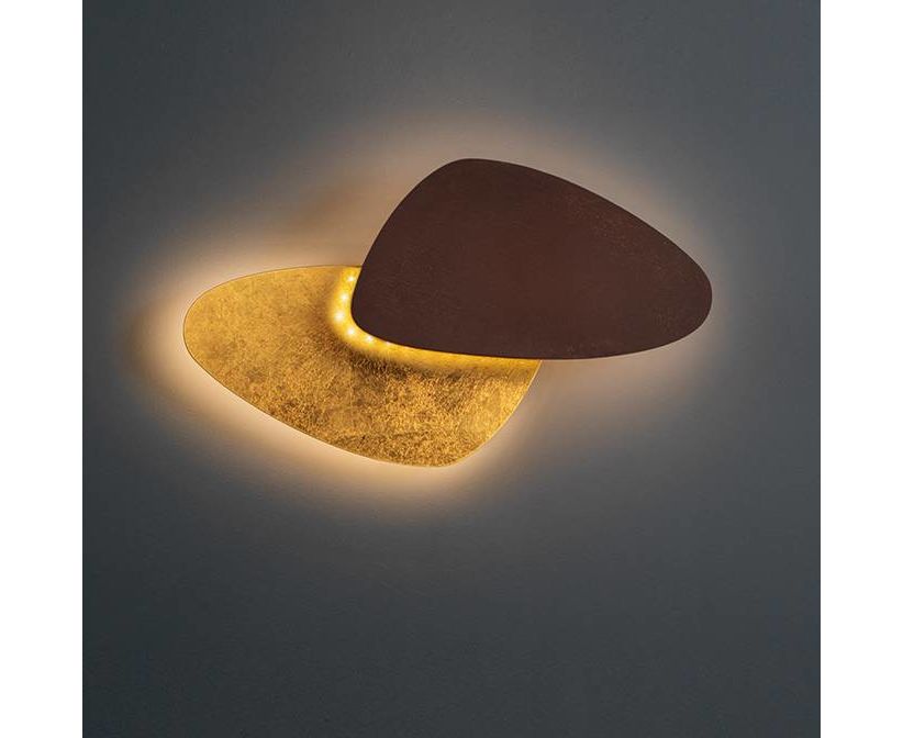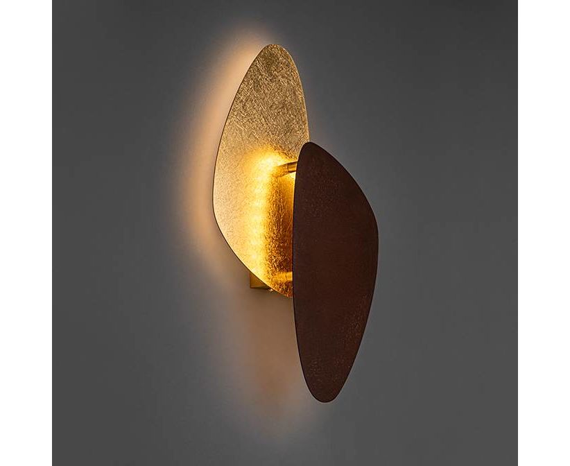 Бра из металла с покрытием из золотой фольги и стали кортен коричнево-ржавого цвета