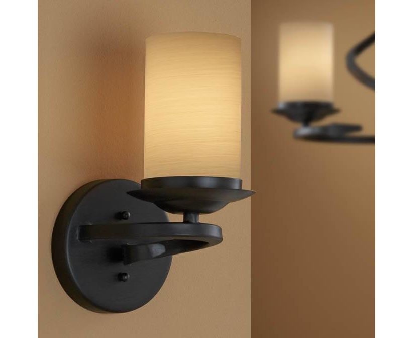Бра из кованного железа с 1 лампой, покрытие "воронёная сталь", плафон из стекла опалового цвета с сетчатым рельефом