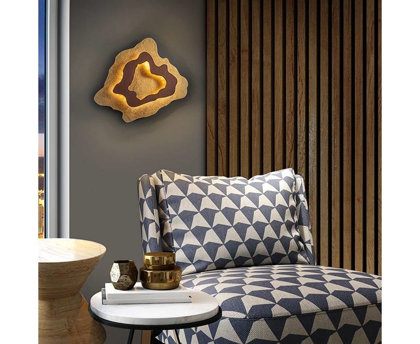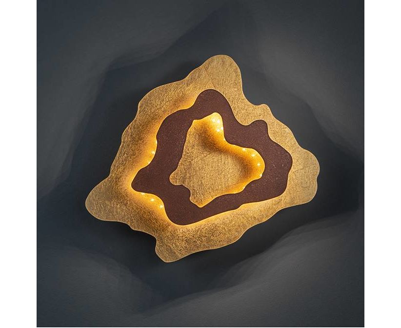 Бра из металла с покрытием из золотой фольги и стали кортен коричнево-ржавого цвета