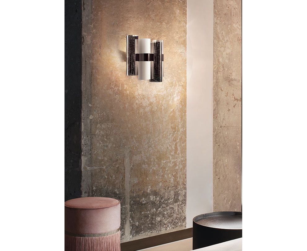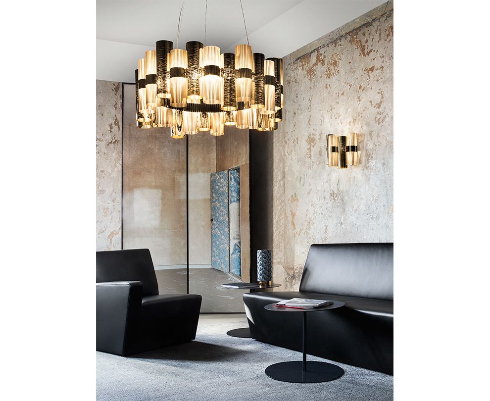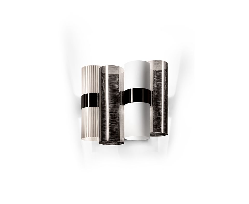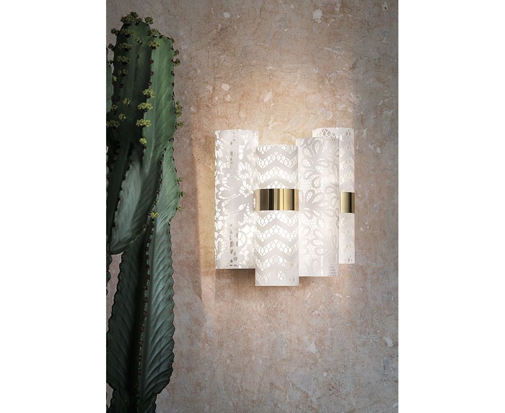 La Lollo - это дань бурным 50-м годам; настенный светильник выпускается в 5 вариантах отделки, со сложной градиентной хроматикой, металлизацией, кружевными узорами и геометрическими узорами, которые украшают различные пространства с той же универсальностью, что и украшения на теле женщины. Уникальные, эксклюзивные технополимеры Slamp сияют, как стекло, но не ломаются, а настенный светильник имеет два источника света (как в холодном, так и в теплом исполнении, в зависимости от выбранной лампы). Одной лампы достаточно для домашнего освещения, а при умножении она идеально подходит для крупных гостиничных проектов. La Lollo Applique является частью коллекции, которая включает в себя подвески различных размеров.