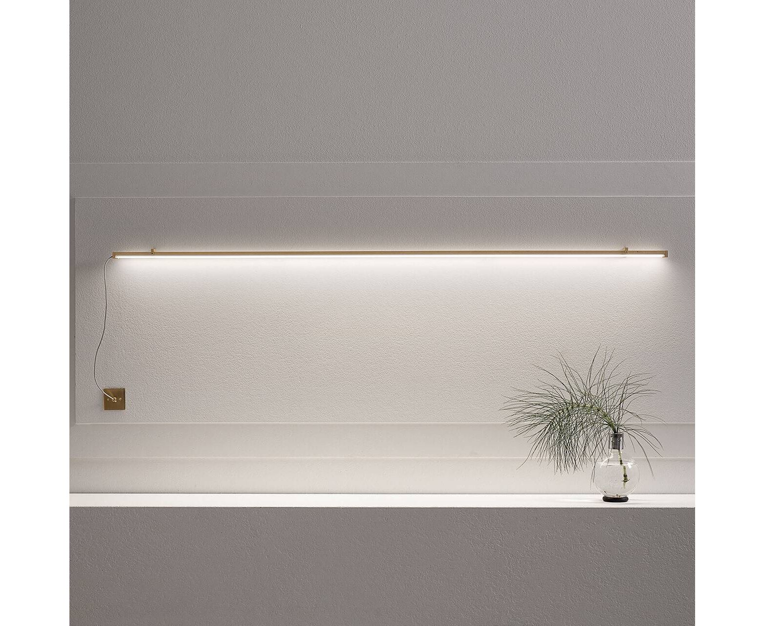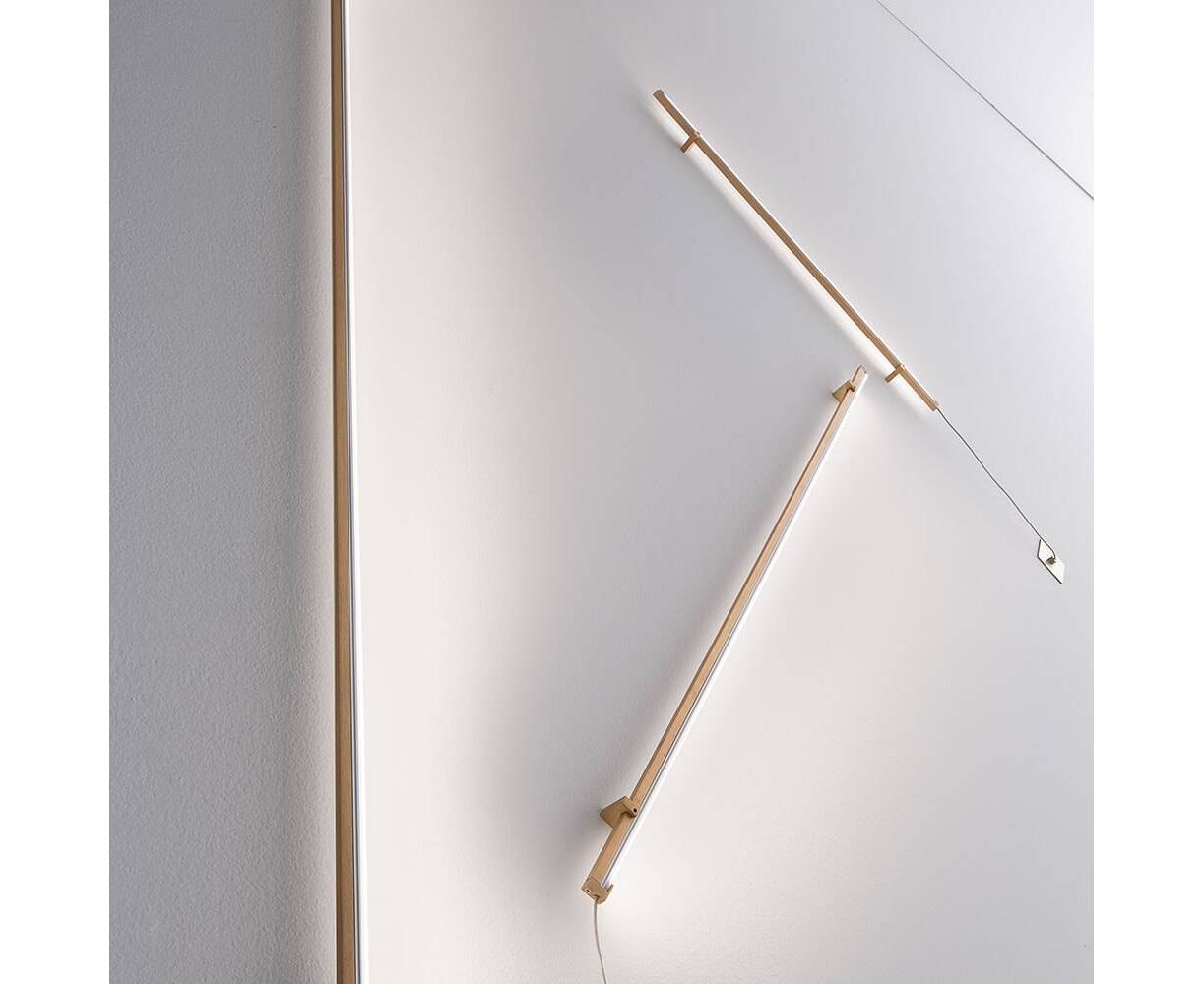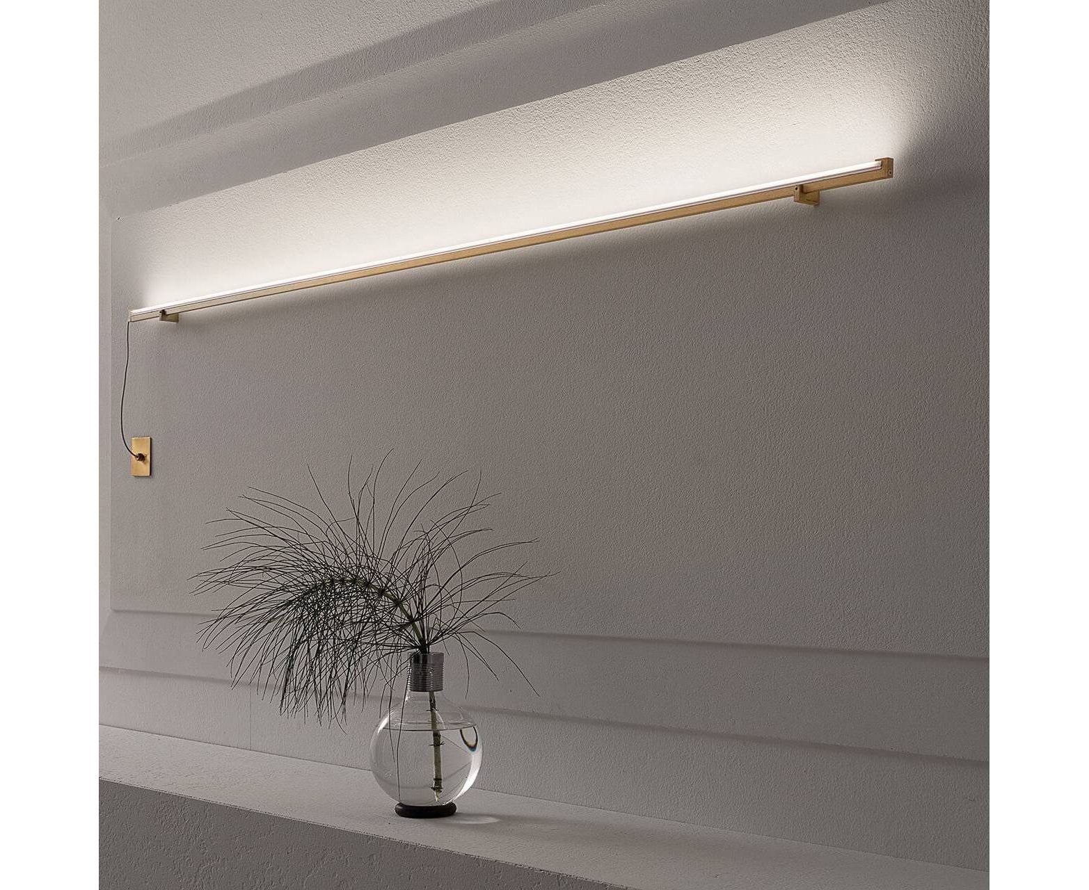 Настенный светильник с латунной/алюминиевой конструкцией. Отделывается латунью. Встроенный светодиодный модуль и опаловый диффузор.