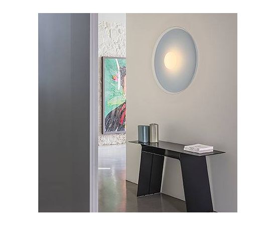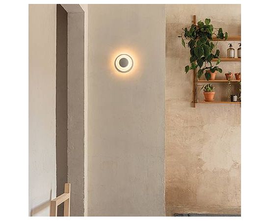 Настенный светильник Top. Его маленькая центральная сфера отражает свет в сторону большего окружающего кольца, создавая эффект ореола равномерного и непрямого освещения и создавая расслабляющую атмосферу. Свет кажется обрамленным в пределах собственного диаметра, его привлекательный и минималистичный дизайн удваивается как произведение абстрактного настенного искусства. Настенное бра Top изготовлено из алюминия и доступно в различных размерах; мини, малый, средний и большой, последний оснащен стеклянным рассеивателем, который излучает общее прямое освещение стиля