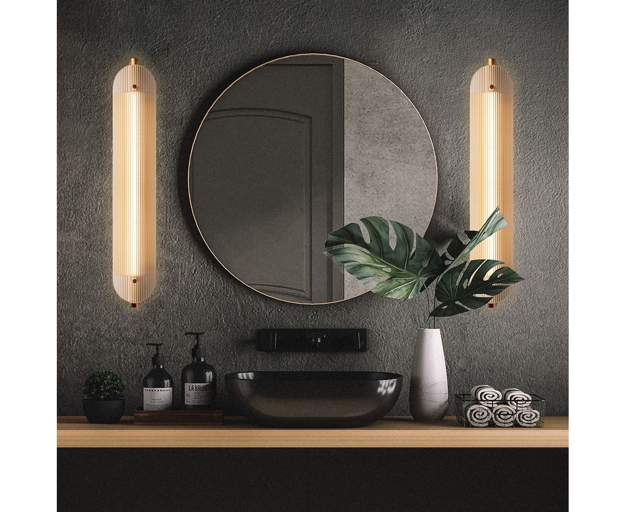 Чистые, характерные линии характеризуют коллекцию стекла Linea. Эта современная коллекция включает в себя настенное бра двух размеров и горизонтальную подвеску с рифленым стеклянным абажуром, который успокаивающе рассеивает свет, создавая эффект линейного массива.