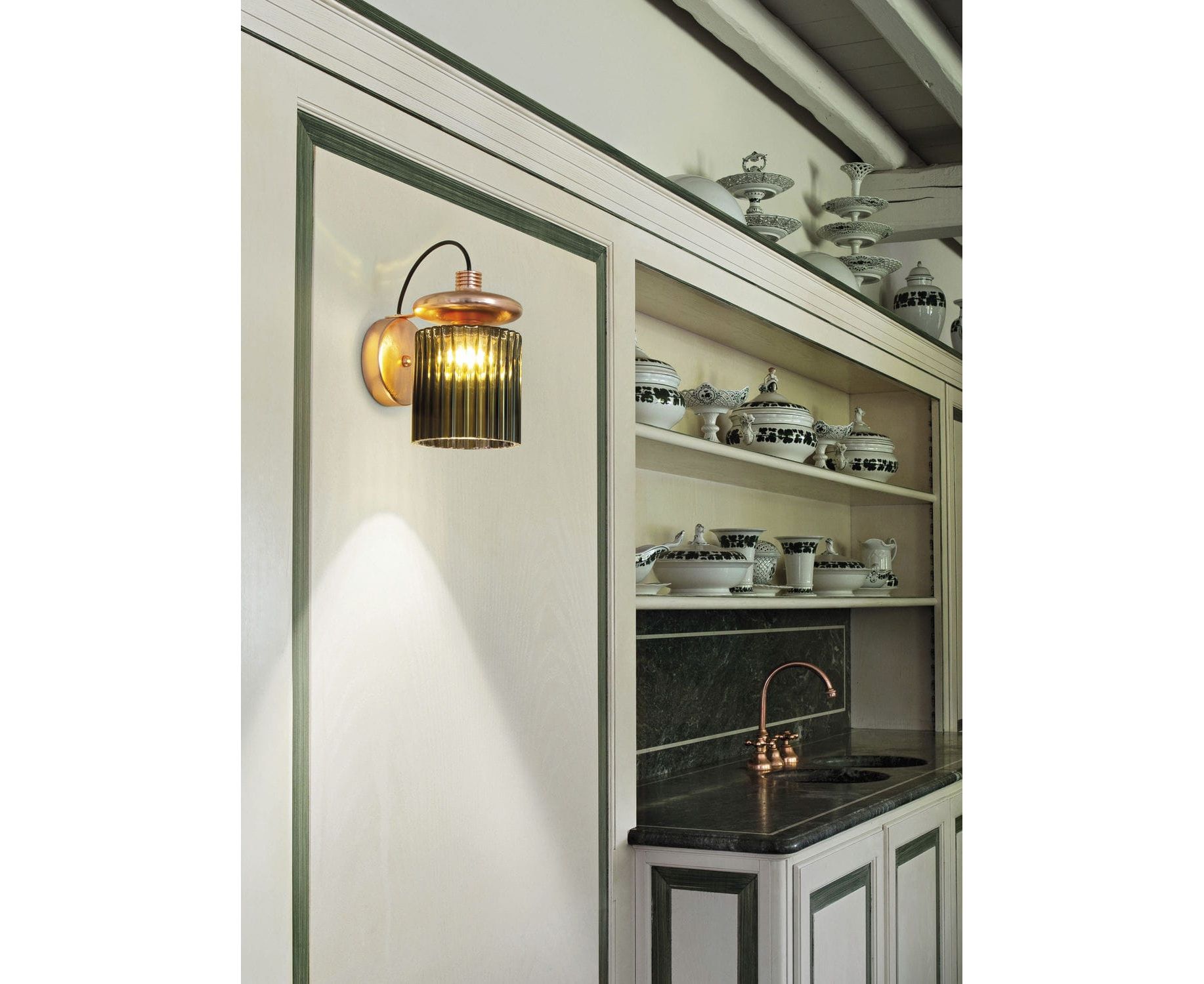 «Техничность» металлического элемента в сочетании с диффузором из выдувного стекла придает Tread индустриальный стиль. Объект напоминает винтажное электрооборудование своей особой формой, в которой ребристый радиатор в сочетании с выдувным стеклом становится отличительным элементом. Отделка из меди, бронзы и матового золота. Tread создает авангардную и стильную атмосферу.