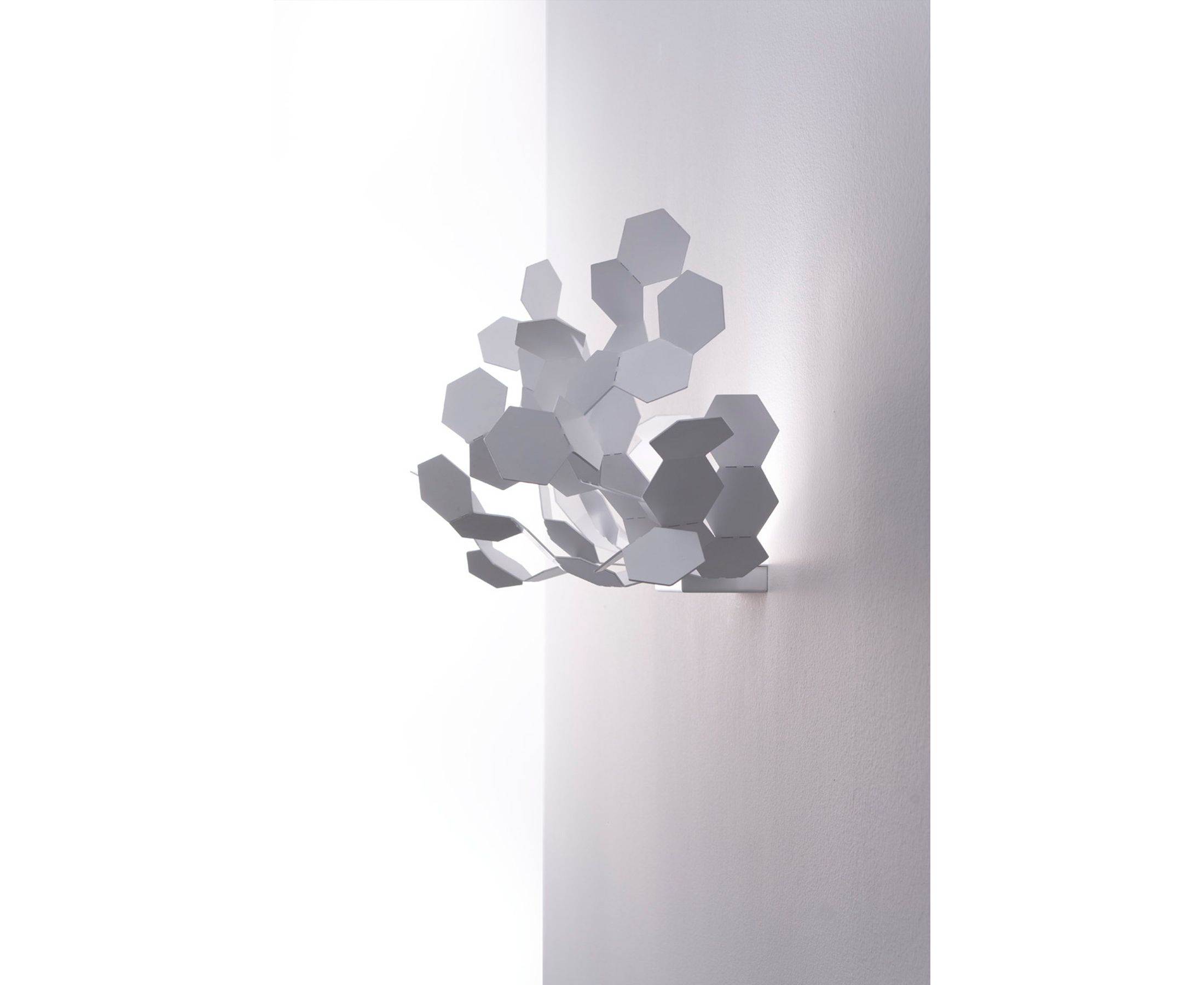 Andromeda - это лампа, которая может создавать бесконечное количество формальных конфигураций в зависимости от того, как различные гексагональные диффузоры / элементы «согнуты».