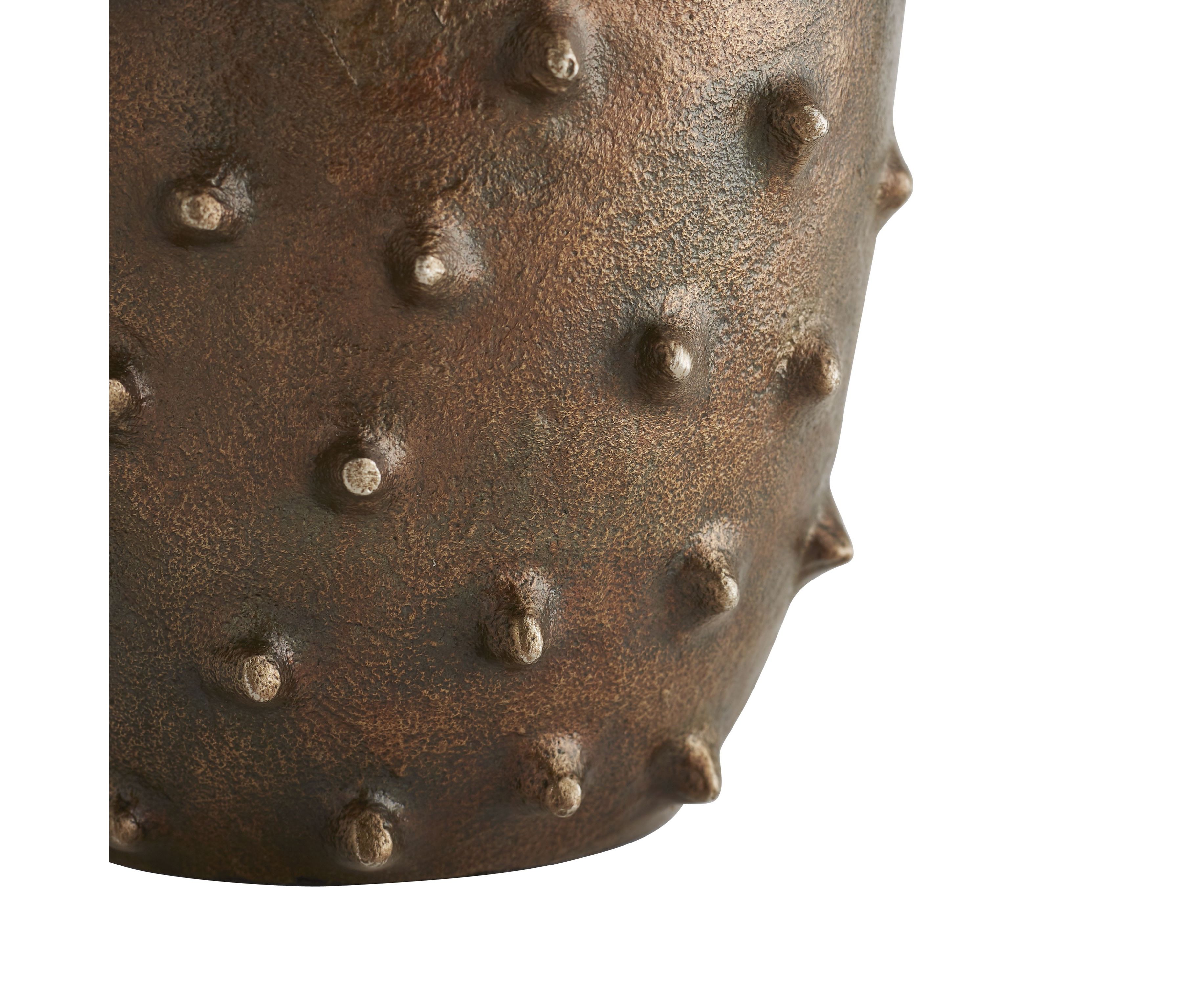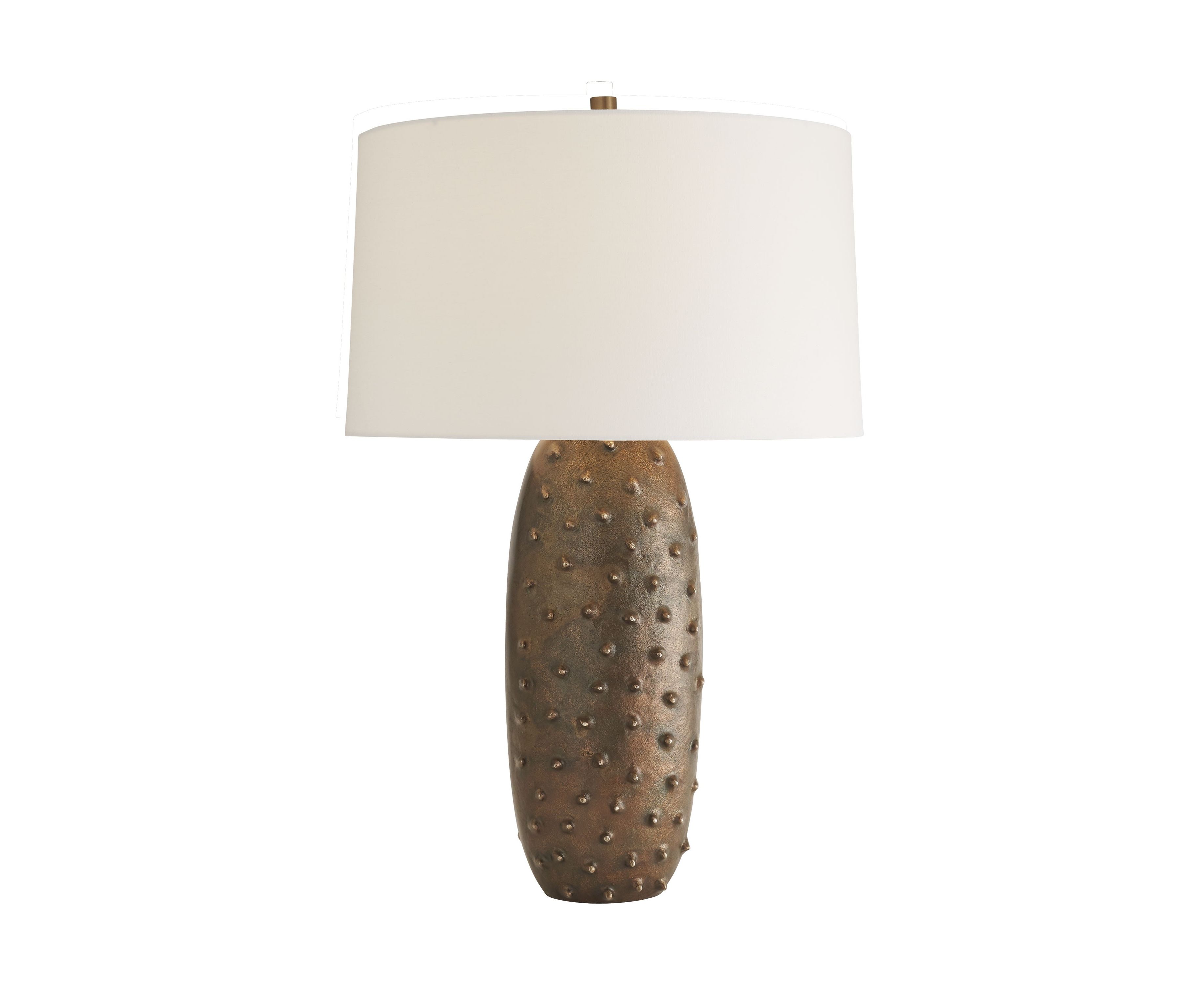 Одна из плодотворных загадок Матери Природы обретает форму с помощью этого визуально дразнящего светильника. Классическая форма отлита из бронзового алюминия с античной латунной отделкой и имеет сильно текстурированный фасад, напоминающий остроконечный фрукт, известный как дыня кивано. При использовании каждая идеальная точка помогает управлять светом, создавая непревзойденную игру теней. Покрыт светильник не совсем белым льняным абажуром-барабаном. Отделка может отличаться.