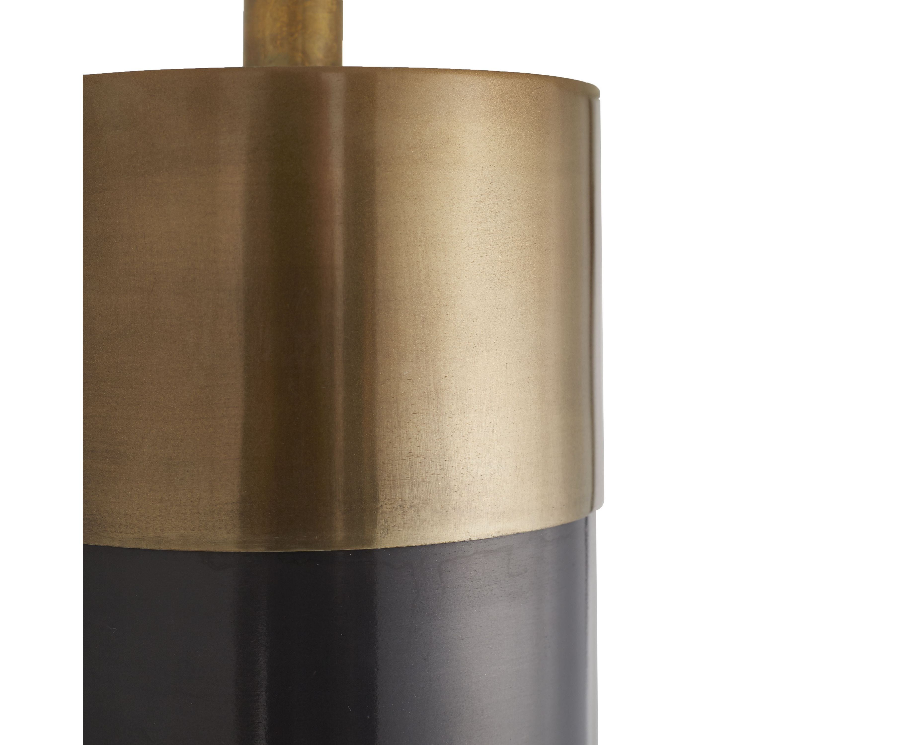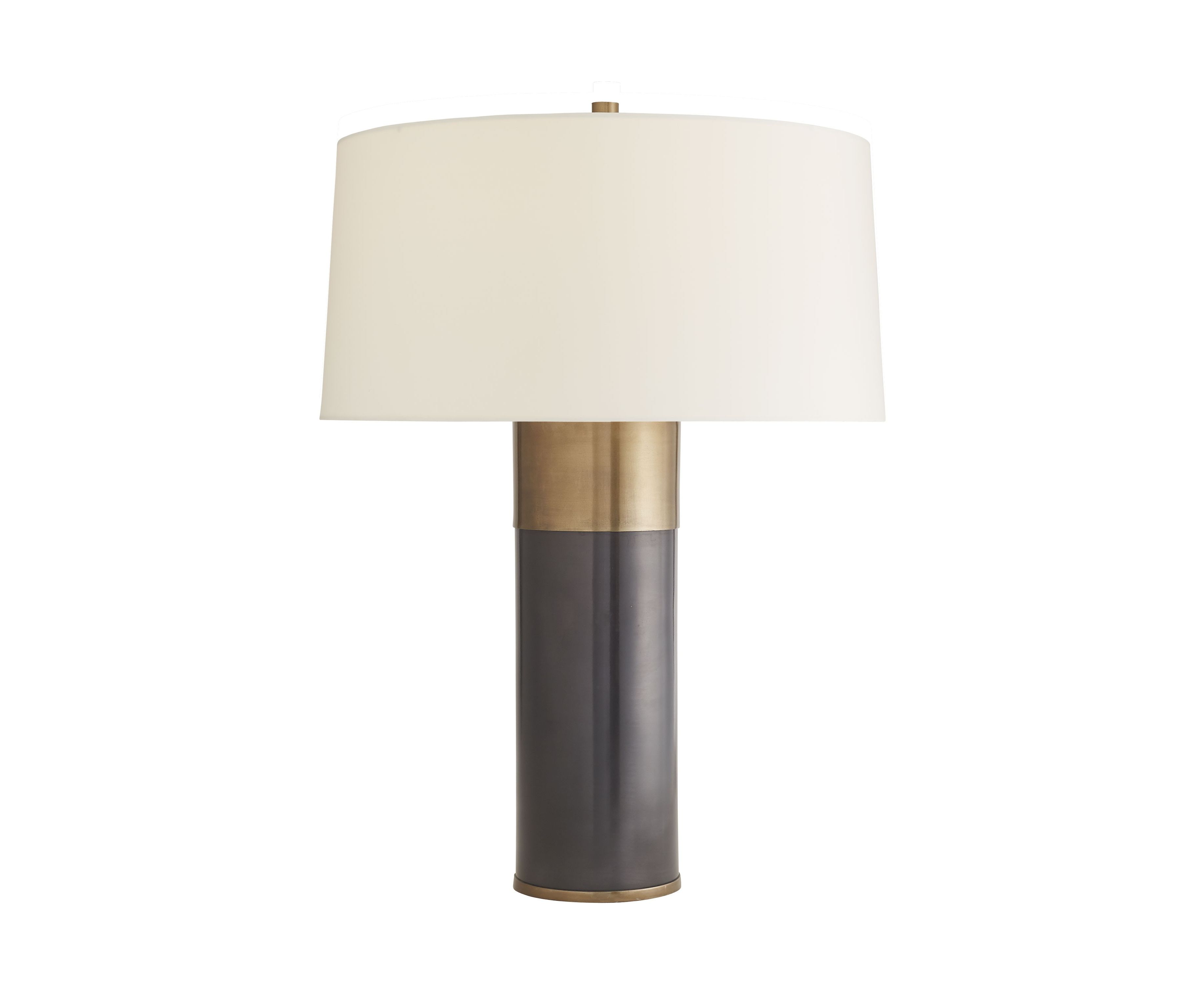 Гладкий. Простой. Утонченный. Классическая форма этой типичной алюминиевой колонной лампы дополнена толстой старинной латунной лентой, которая покрывает ее бронзовое основание. Дуэльные оттенки создают поразительный контраст, который поднимает эстетику от простого к ошеломляющему. Сверху абажур-барабан из микрофибры цвета слоновой кости с подкладкой из белой микрофибры.