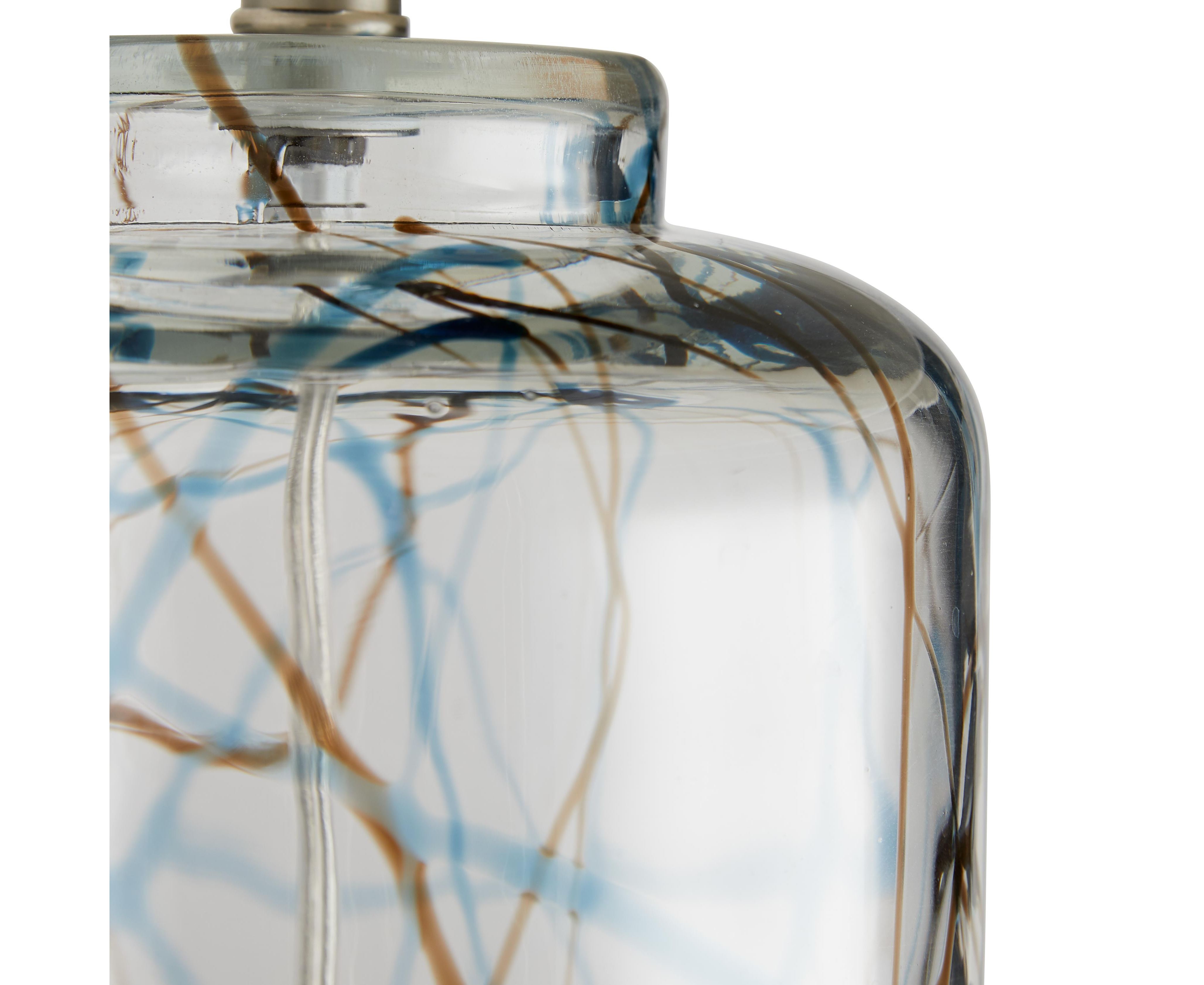 Традиционная основа лампы приобретает современный облик с вихревым рисунком в стиле Поллока. После создания прозрачного дутого стекла на верхнюю часть закручивается еще один слой цветного стекла, что и создает многослойный дизайн. Поскольку вы можете видеть через форму, эта часть имеет много размеров и текстур, визуально и на ощупь. Покрыт не совсем белым льняным абажуром-барабаном с не совсем белой хлопковой подкладкой. Отделка может отличаться.