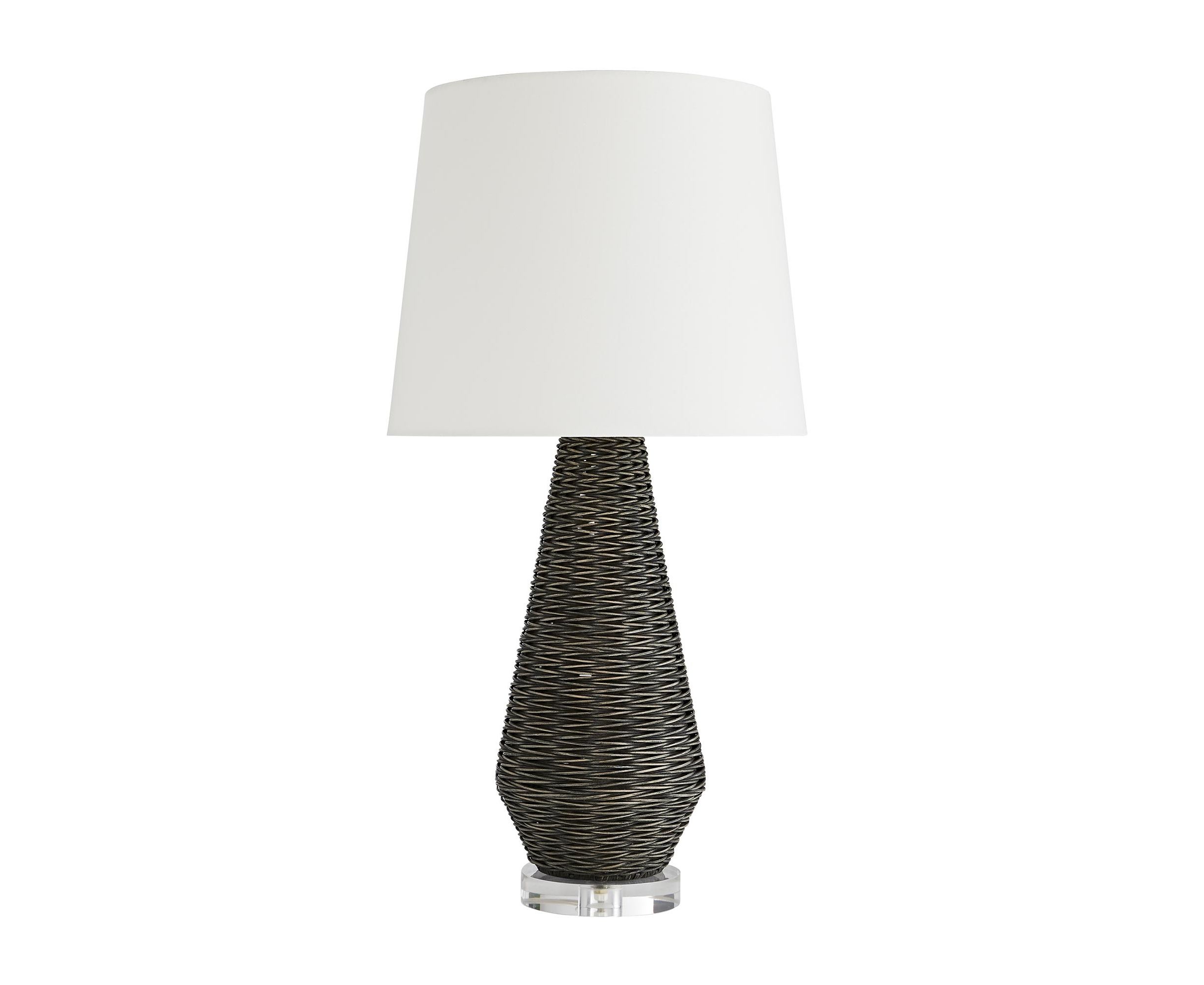 Лампа Whitcomb естественно поднимает традиционный дизайн плетением из ротанга. Темно-серая отделка придает мрачное прикосновение фактурной основе и латунным акцентам. Устанавливается на прозрачный акрил, который создает плавающий эффект. Покрыта высоким конусом не совсем белого льняного абажура с белой хлопковой подкладкой. Отделка может отличаться.