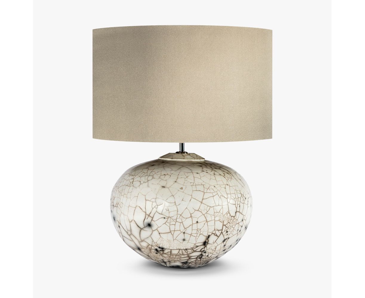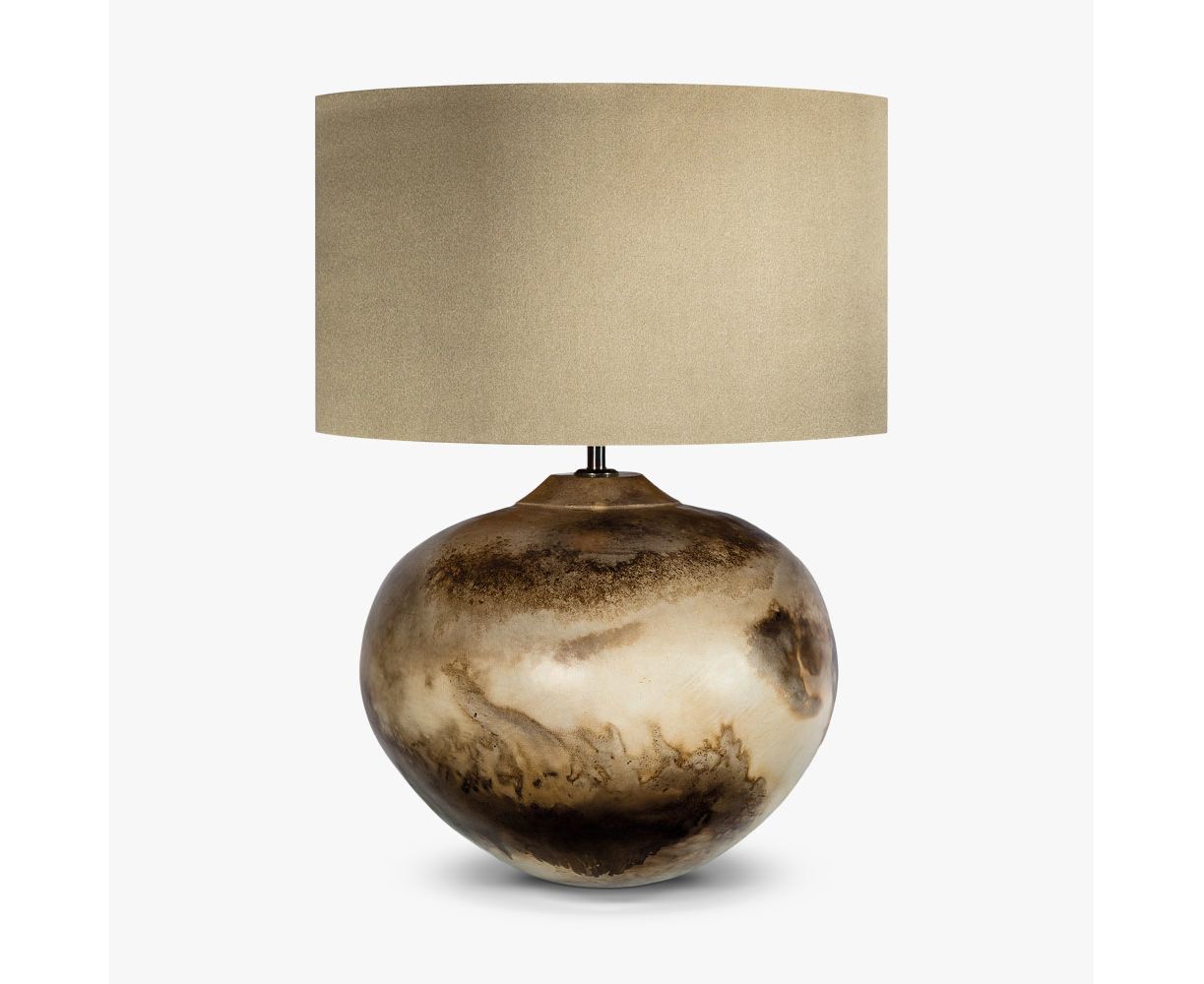 При палящих горячих температурах тело глины, вылепленное вручную, извлекается из печи и погружается в сосуд с горючими материалами; воспламеняющий огонь, который облизывает поверхность основания лампы и рисует дымный пейзаж снаружи. Возвращаясь к древнему японскому процессу «раку», но сделанному здесь, в Великобритании, настольная лампа Fornax - настоящая красота, созданная там, где искусство встречается с наукой. Эти очаровательные настольные лампы доступны в трех уникальных вариантах отделки; гарь, пустыня и сожженная сиенна.