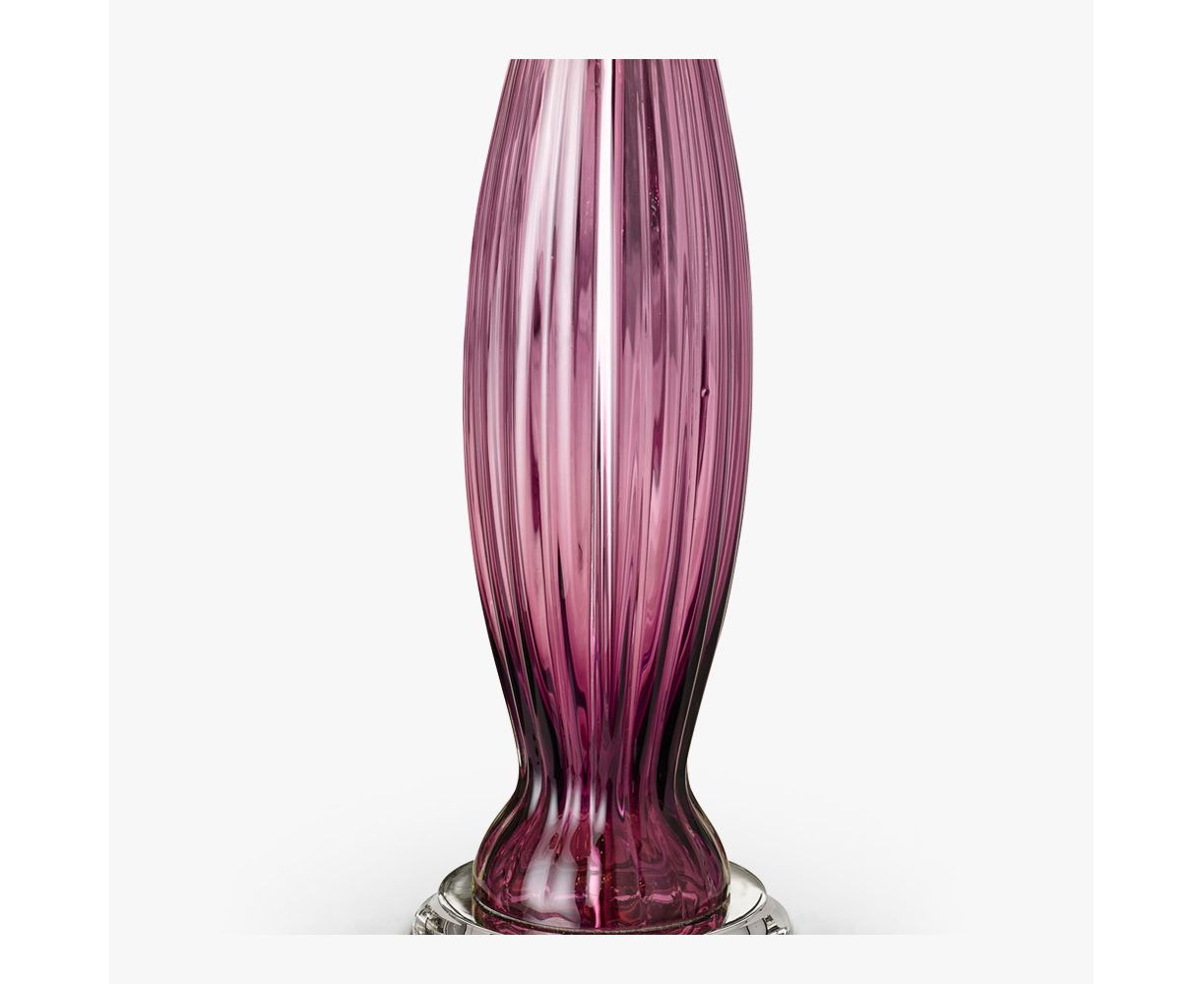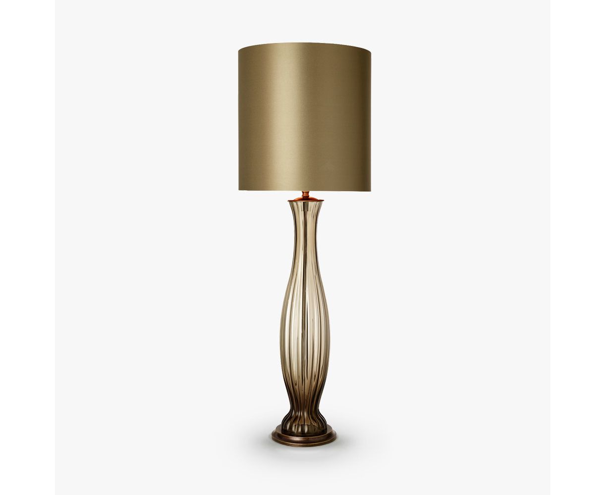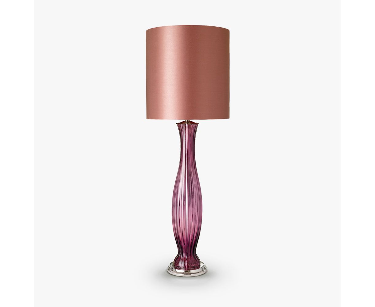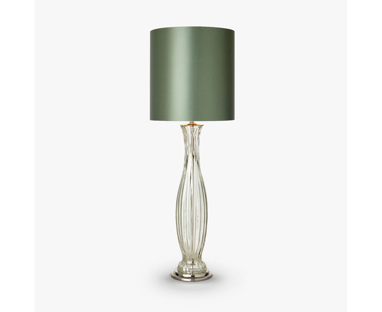 Чувственная и элегантная настольная лампа из единственной изогнутой колонны из ребристого муранского стекла.