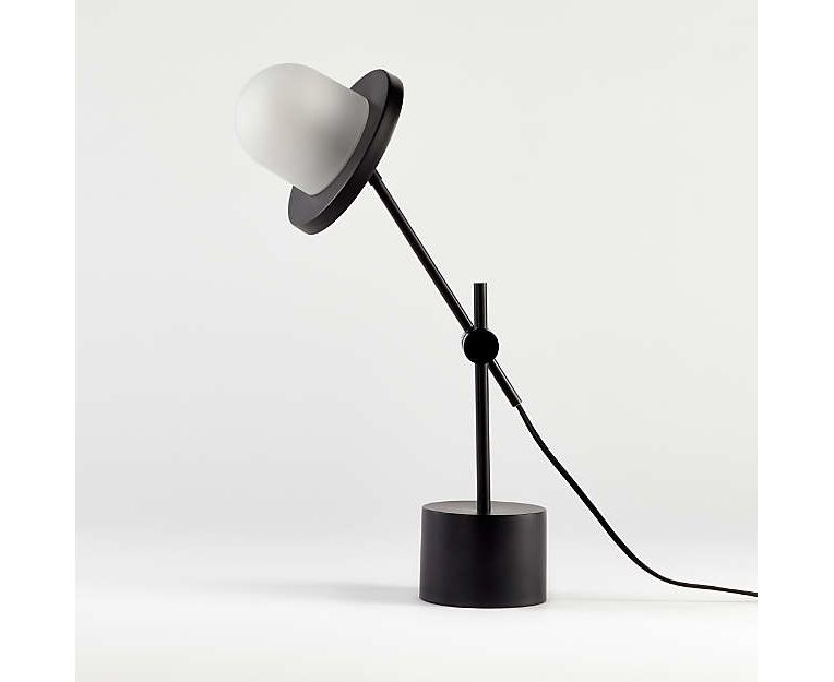 Настольная лампа с геометрическим рисунком соединяет стержни, круги и цилиндры, обеспечивая свет именно там, где он нужен, в гладкой модели линий и кривых. Выполненная в современном матовом черном цвете, лампа поддерживает плафон из матового стекла, создающий мягко рассеянный свет. Наклоните ручку и направьте лампу, чтобы добавить сфокусированное освещение для чтения, письма и декоративного освещения. Настольная лампа Siren, эксклюзивная для Crate and Barrel, подходит для столов, тумбочек и тумб.