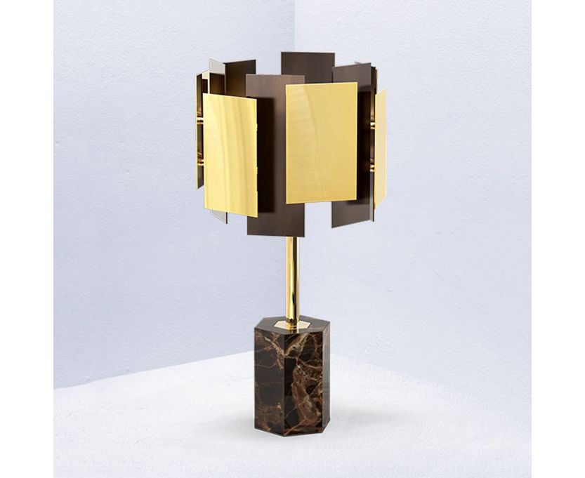 Его форма напоминает бывшие гигантские промышленные кварталы, в которых сейчас расположены мастерские художников и небольшие галереи в Художественном районе Гонконга. Настольная лампа Fo Tan состоит из позолоченной латуни, глянцевых и матовых лакированных элементов в сочетании с потрясающим основанием из черного мрамора.