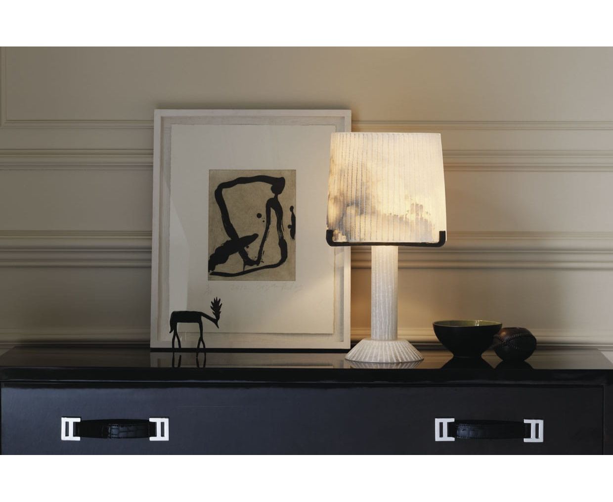 Уникальный узор с прожилками алебастра означает, что нет двух одинаковых ламп. Некоторые почти белые, в то время как другие имеют серые прожилки. Ремесленники CTO Lighting добавляют текстуру, высекая поверхность камня. Алебастровый абажур светится уникальным способом, чтобы вызвать роскошный выдающийся образец.