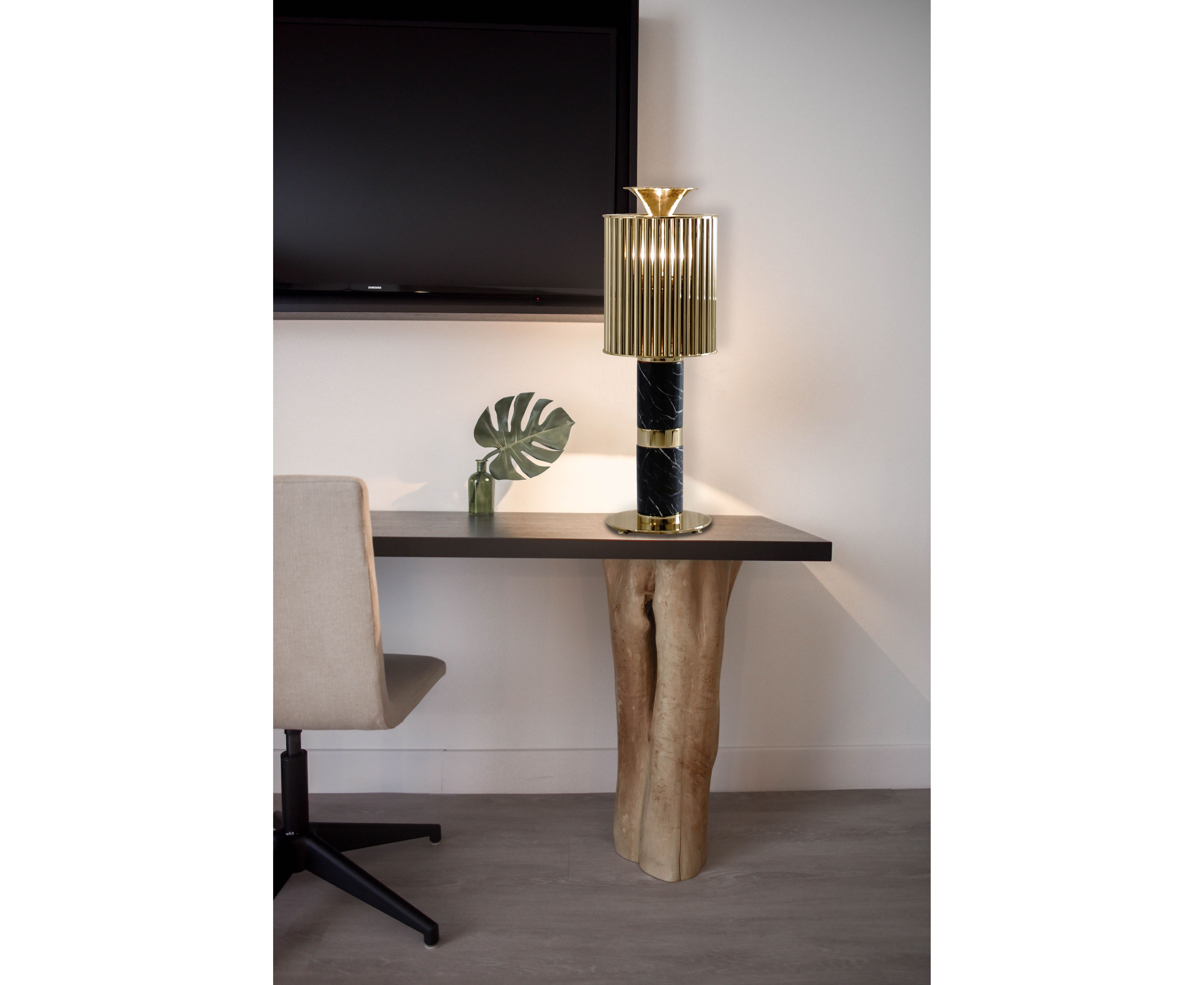 Величественно высокая настольная лампа Donna появилась, чтобы изменить всё, что вы когда-либо видели в мире дизайна освещения. Эта медная настольная лампа высотой почти 70 сантиметров — это нечто гораздо большее. Корпус и плафон выполнены вручную из латуни и мрамора Estremoz и отделан позолотой, чтобы подчеркнуть его роскошный вид. Возможно, это самый эксклюзивный дизайн DelightFULL, Donna украшена элегантными деталями ручной работы по всему плафону, что придаёт ей голливудское очарование. С её изысканным дизайном, она подходит для любой классической прихожей или столовой.