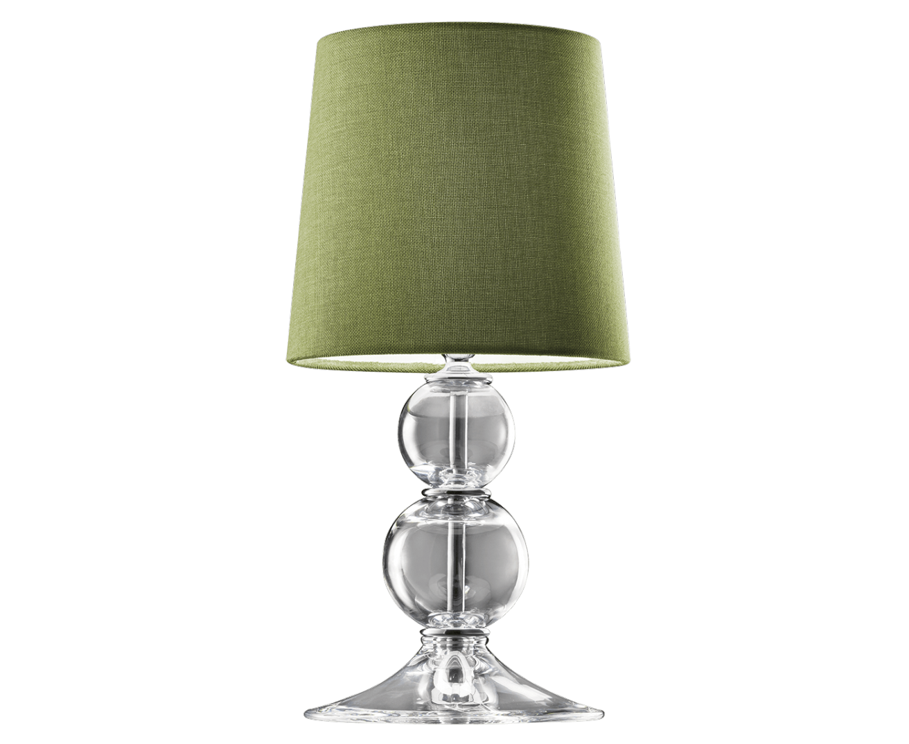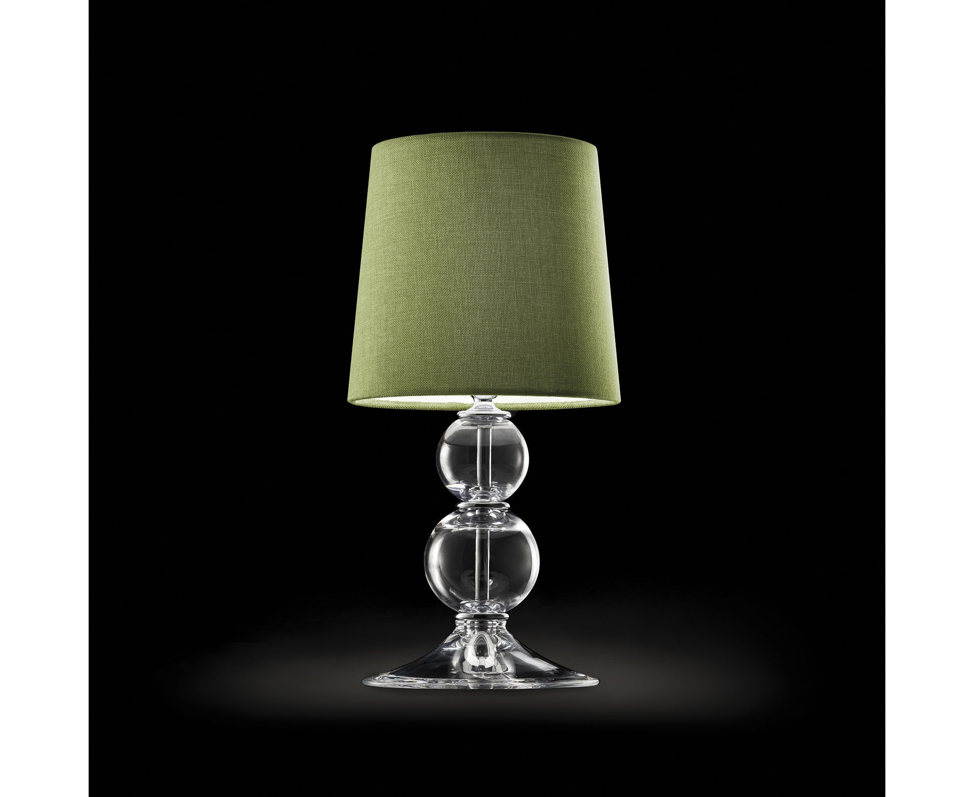 Настольная лампа из хрусталя с зеленоватым абажуром и деталями из хромированного металла. Доступны в разных размерах и цветах. Коллекция Opera Classic.