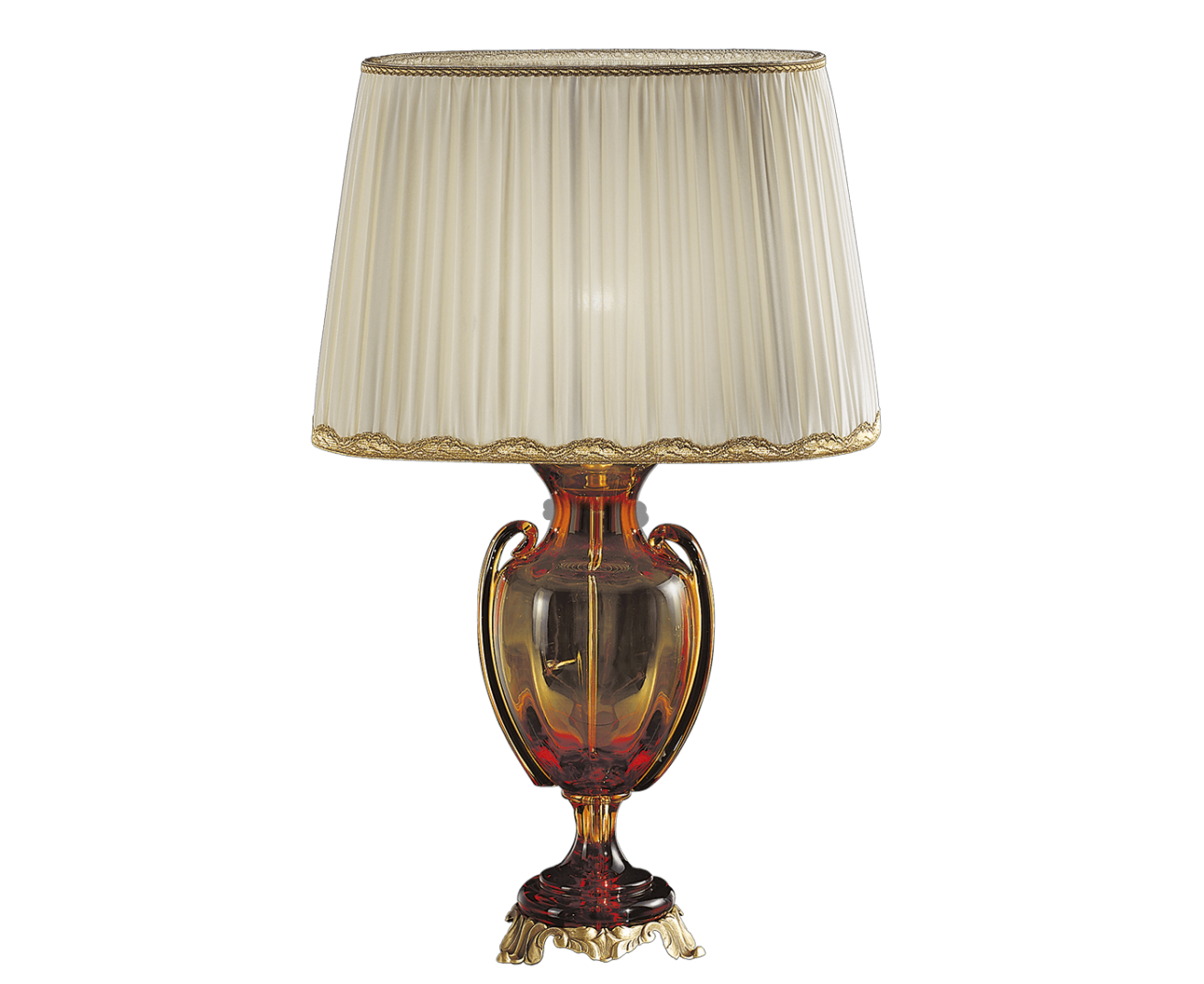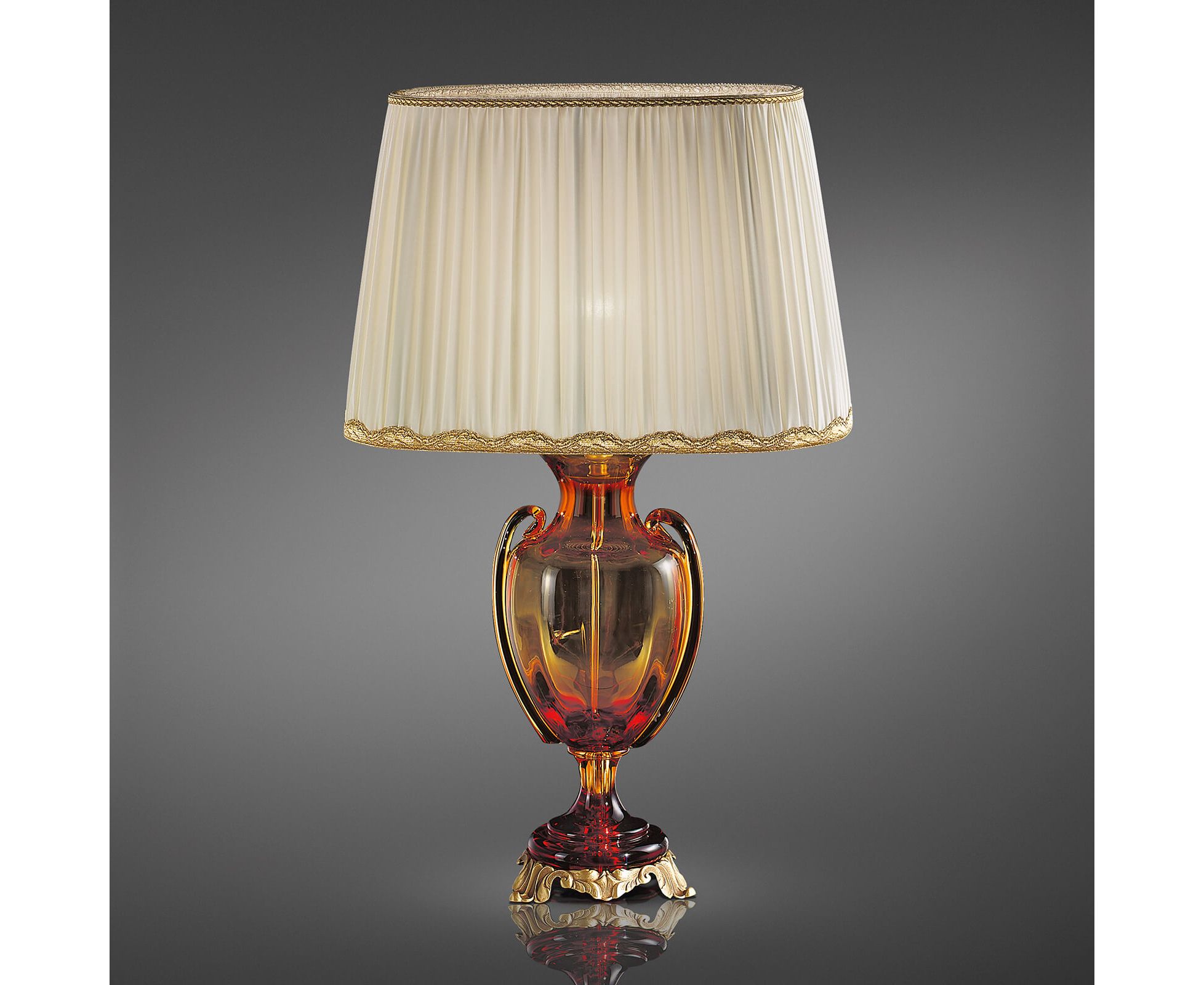 Настольная лампа из янтарного хрусталя, металлическая основа с отделкой под старинное золото и абажур из бежевого плиссе. Доступен в разных цветах. Коллекция Opera Classic.