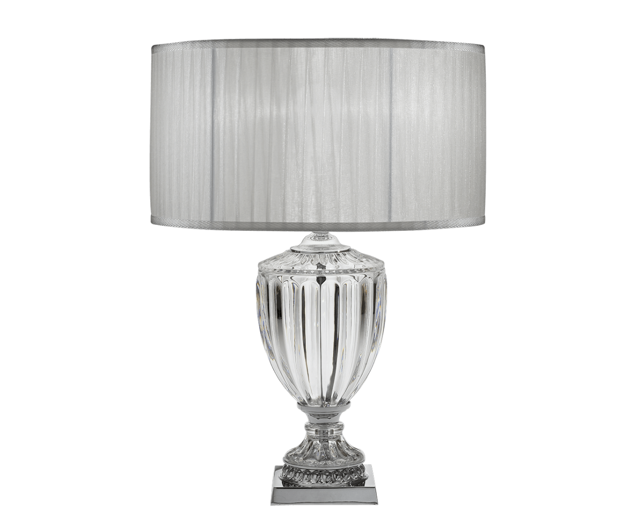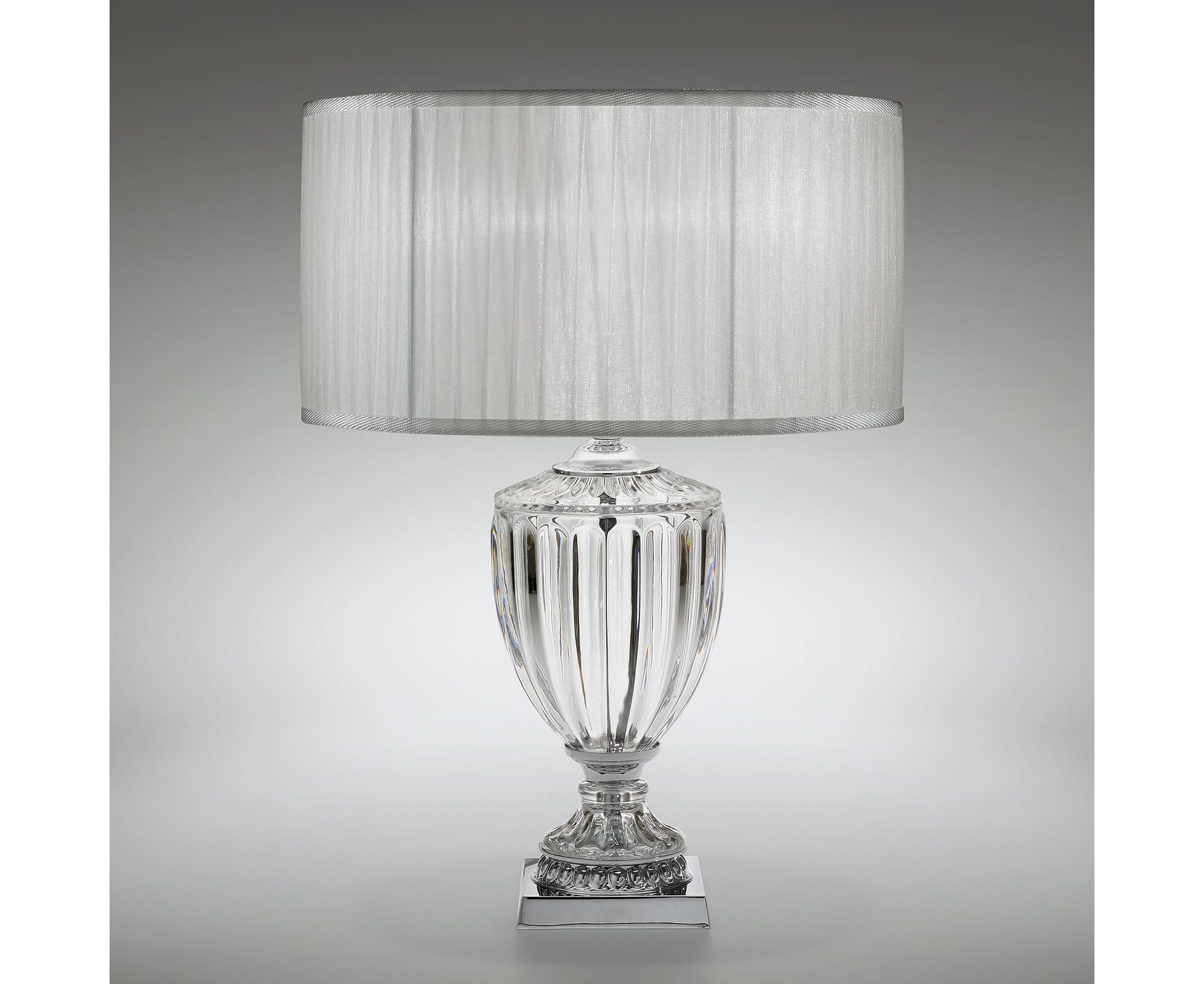 Настольная лампа из прозрачного хрусталя с металлическим основанием из никеля, абажур цвета слоновой кости. Коллекция Opera Classic.